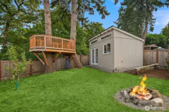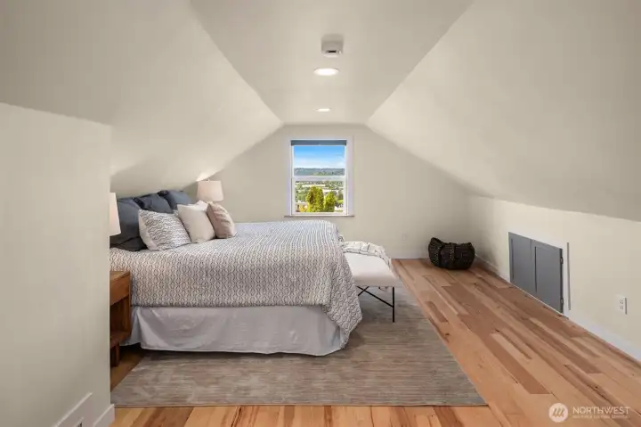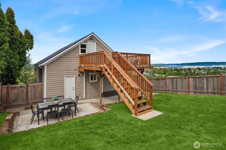 Enjoy expansive views of Lake Washington, the Olympics, & Seattle skyline from this beautifully updated home on historic Renton Hill. Renovated with care & style, it features new flooring, fresh exterior paint, & a new heat pump with A/C for year-round comfort. Main floor offers a bright living/dining area with lake views, well-appointed kitchen, & primary suite. Upstairs includes a flex room, spacious bedroom, & view deck perfect for entertaining or relaxing. Reimagined lower level provides two bedrooms with walk-in closets, a bath, & yet another living space. Fully-fenced backyard showcases a treehouse, firepit, & newly-built backyard studio perfect for a home office or guest quarters. Moments to Downtown Renton & an easy commute via 405!