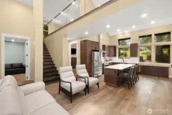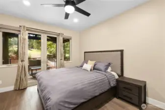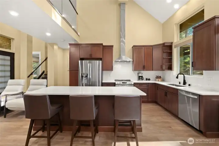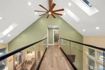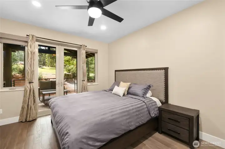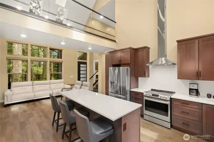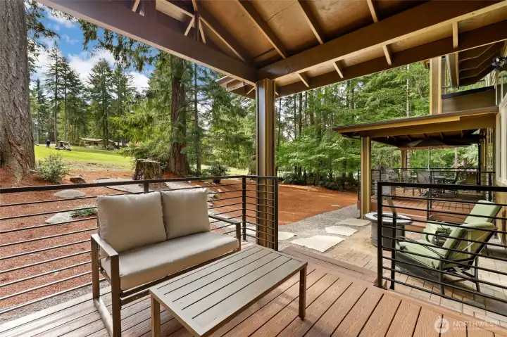 Stunning custom home on the 18th fairway, just down the street from the Alderbrook clubhouse. Unique design features vaulted ceilings, tons of natural light, and a striking catwalk. Main-floor primary suite has spa-like bath with soaking tub and beautifully tiled shower, walk-in closet, and French doors to a covered deck. A cozy den with gas fireplace is perfect for guests. Open concept great room with spacious kitchen and dining area leading to the large covered deck–perfect for entertaining all year. Upstairs, a bonus room leads to the catwalk, a bedroom with covered balcony, and ¾ bath. Quiet, forested lot with easy access to parks, trails, sports courts, community garden, and unlimited golf for two! Turnkey, ready to move in or AirBnB!