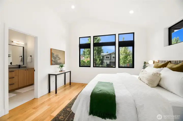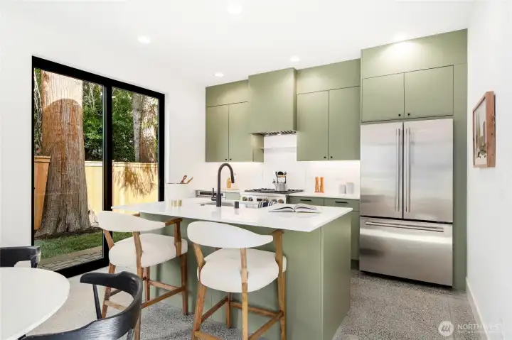 Experience modern living in coveted Bridle Trails with this brand-new construction 2 bed/2.25bath home by KaneBuilt featuring an EXPANSIVE YARD and two dedicated parking spaces With EV charging! Thoughtfully designed with heated, polished concrete floors, real hardwoods, and premium finishes throughout, it blends style and comfort effortlessly. The chef’s kitchen boasts top-tier appliances, while vaulted ceilings and abundant natural light enhance the open, airy feel. Work from home in the upstairs office, then relax outdoors by the gas fireplace. 405 is just down the street making travel very easy. With sleek design elements, and every detail carefully considered, this home offers the perfect mix of function and luxury!