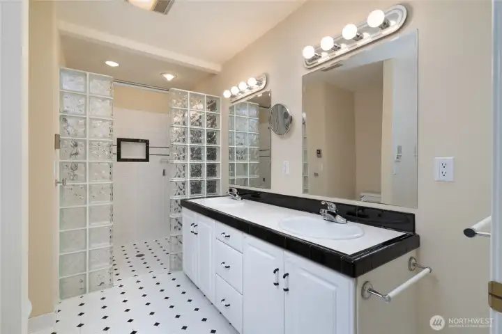 476 Nez Perce Place offers the best of Shelter Bay living! The main level features a spacious primary ensuite, office, wraparound deck, large living room, open kitchen, powder bath, laundry, and garage access—all centered around a cozy fireplace. Downstairs, enjoy a full second kitchen, tiled bath with double shower, two bedrooms, laundry, fireplace, and garage/shop access—ideal for multigenerational living. With vaulted ceilings, hardwoods, custom molding, and abundant light, this home shines. Relax on the deck with sunset and marina views, plus community perks: marina, golf, private beach, gated entry, and pool.