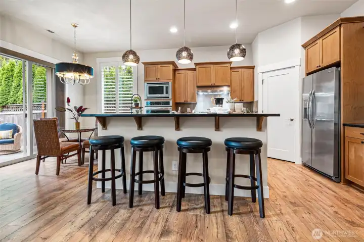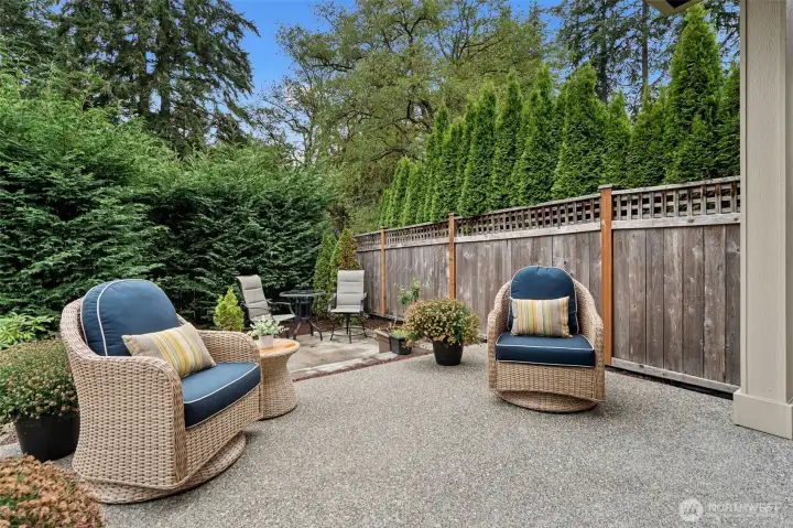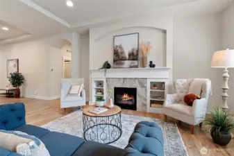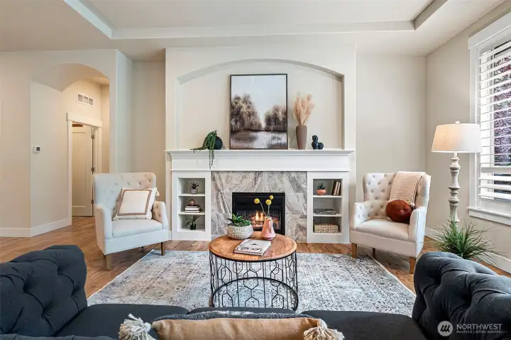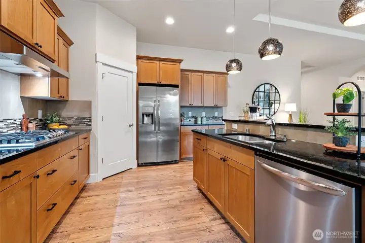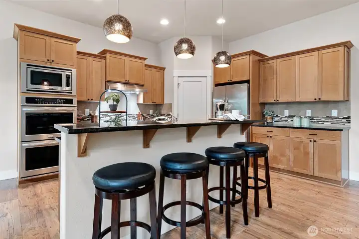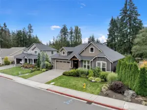 Come home to this sophisticated single-level beauty! Set in the newer Fox Run neighborhood, you are within minutes of downtown Gig Harbor and Uptown shopping/dining. This home features a layout that is spacious in all the right places. From the inviting living/dining room with eye-catching fireplace, to the gourmet kitchen with double oven and island perfect for entertaining, from the airy primary suite with gracious walk-in closet and luxurious soaking tub, to the fully-fenced yard with patio, it's creature comforts galore. Two guest bedrooms, guest bath, and den off entry ensure plenty of space! Garage is equipped with electric car charger. This house comes with a complimentary one-year home warranty. See yourself here!