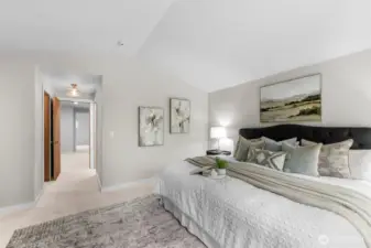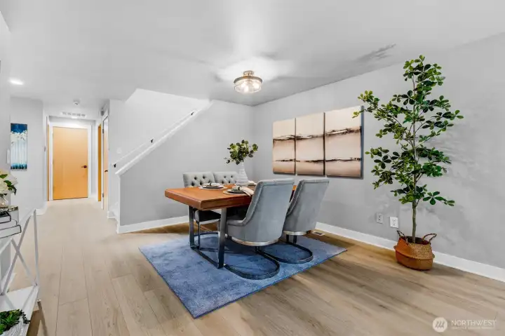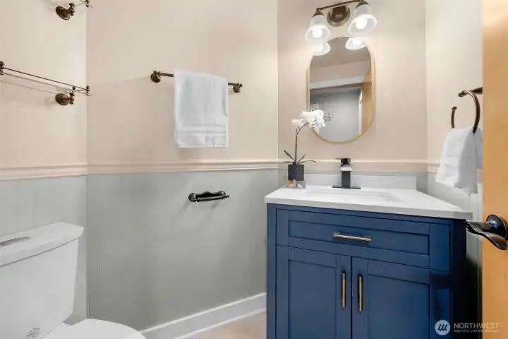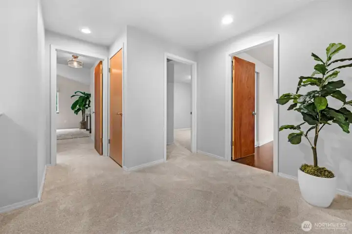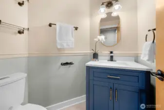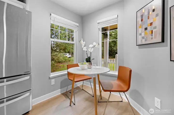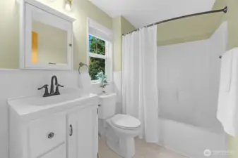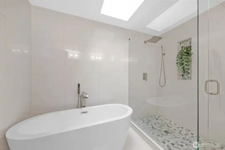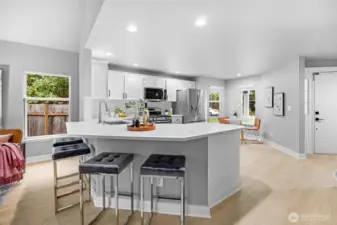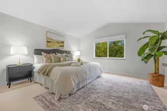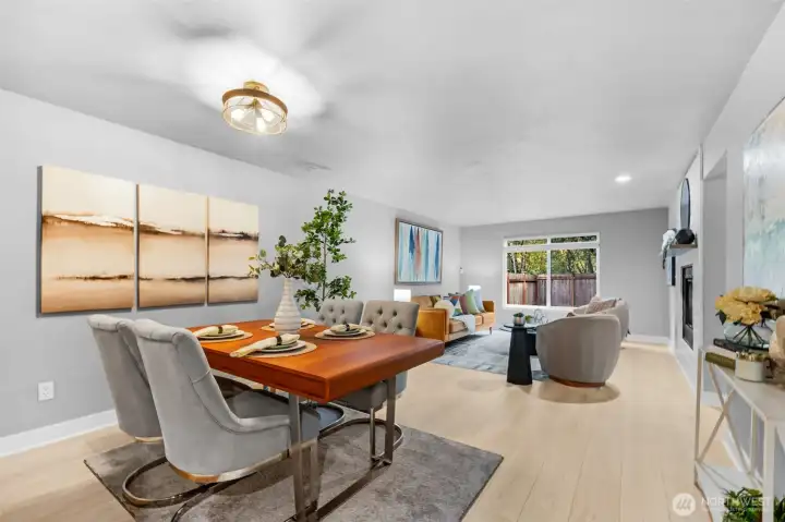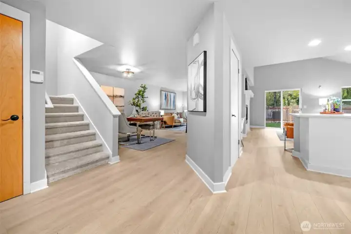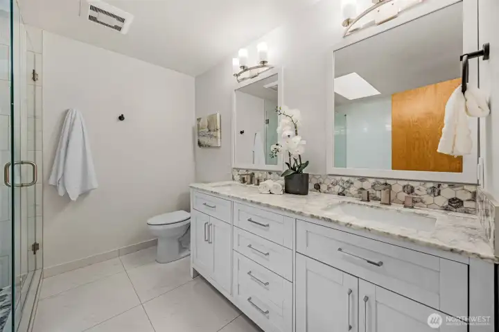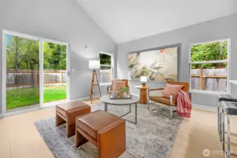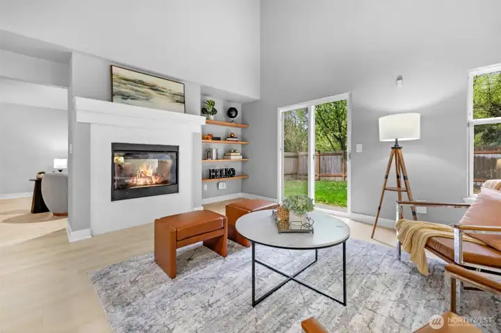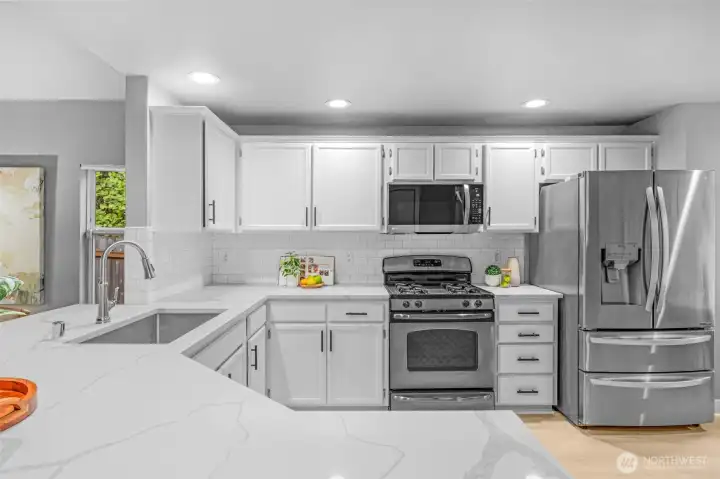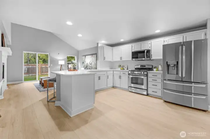 Beautifully updated home backing to a peaceful natural greenbelt in an established community and the highly coveted Lake Stevens School District. Airy vaulted ceilings and skylights frame a modern kitchen with Calacatta quartz counters and full-height backsplash, plus newer refrigerator, microwave and dishwasher. A large slab island with eating bar is perfect for entertaining. Upgrades include LED lighting, water-saving toilets, fresh trim, and newer roof, water heater and furnace. Luxury bath with glass walk-in rain shower, extra-large soaking tub and double-sink vanity. All-new hard-surface flooring, a double-sided gas fireplace, multiple workspaces with high-speed internet, and a fully fenced yard with patio is move-in ready.