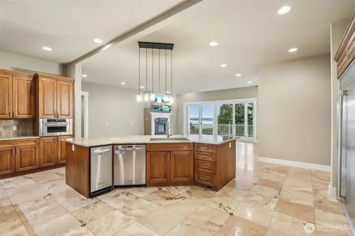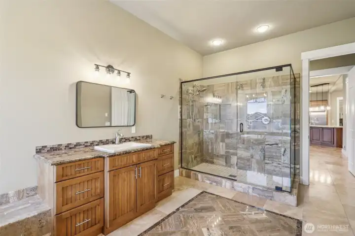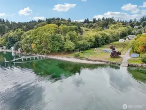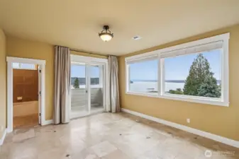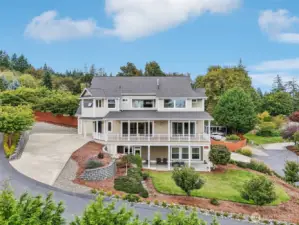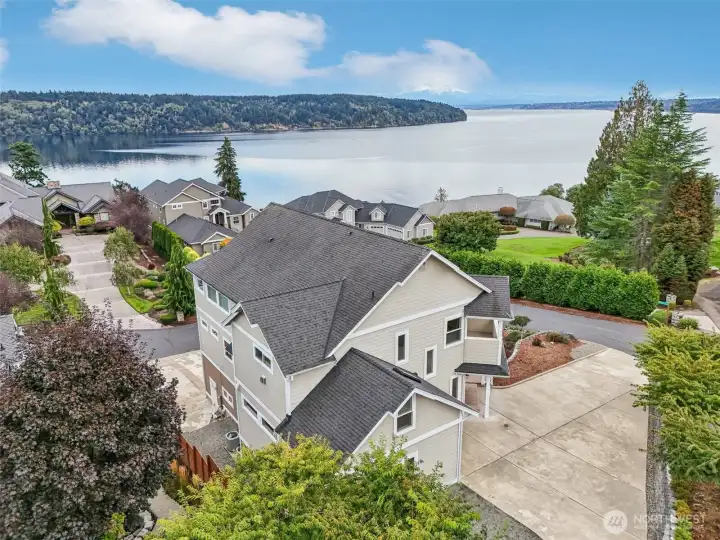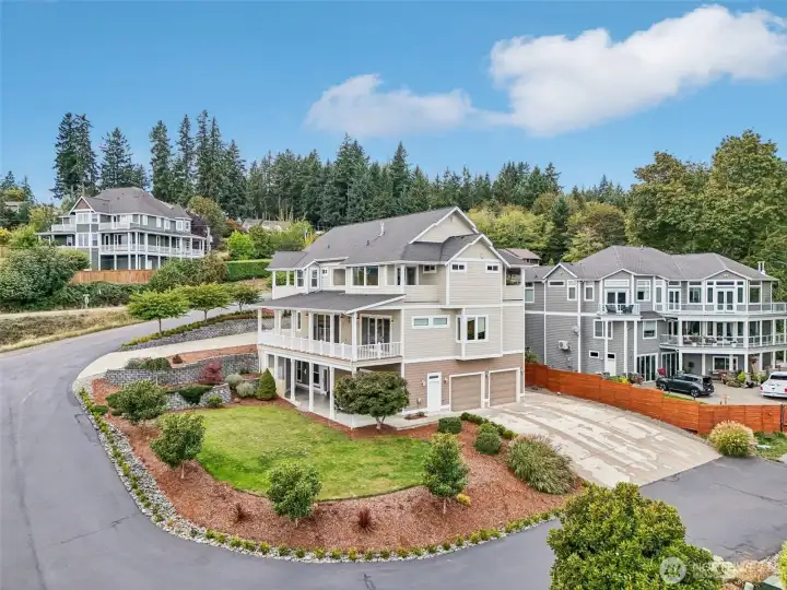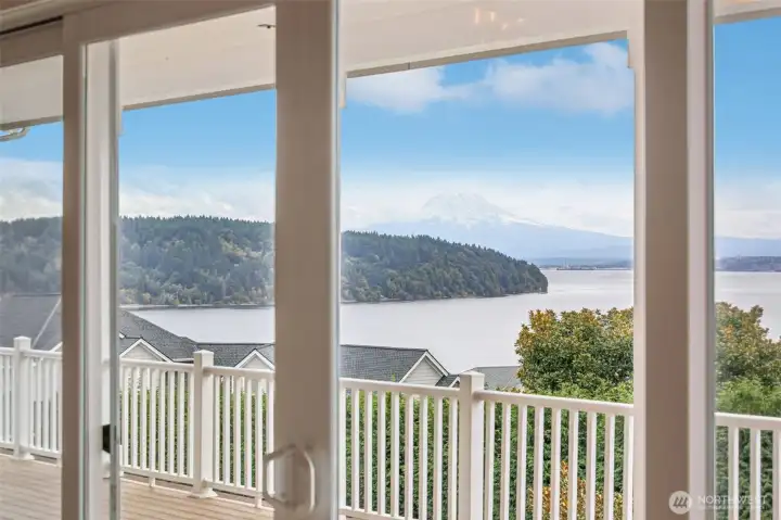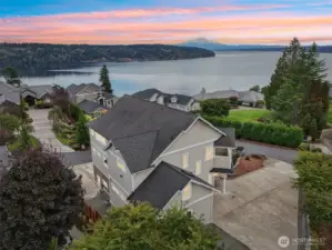 Take a look at incredible opportunity to live on Colvos Passage with breathtaking views of Puget Sound and Mt Rainier. Enjoy the exclusive community beach, boat launch, and park. This home features a massive chef's kitchen that opens up to the great room, and wrap around deck. The expansive main level primary bedroom has an ensuite 5-piece bathroom with soaking tub, fireplace, and deck. The upper level has an expansive loft with fireplace and three bedrooms all with ensuite bathrooms. The lower level is an ADU with two bedrooms all with ensuite bathrooms. The floors are radiant heated travertine throughout the entire house and both separate garages have epoxy floors. This perfectly luxurious home just is minutes from downtown Gig Harbor.