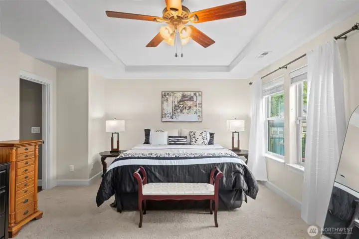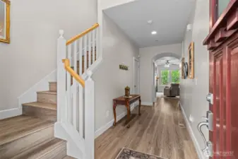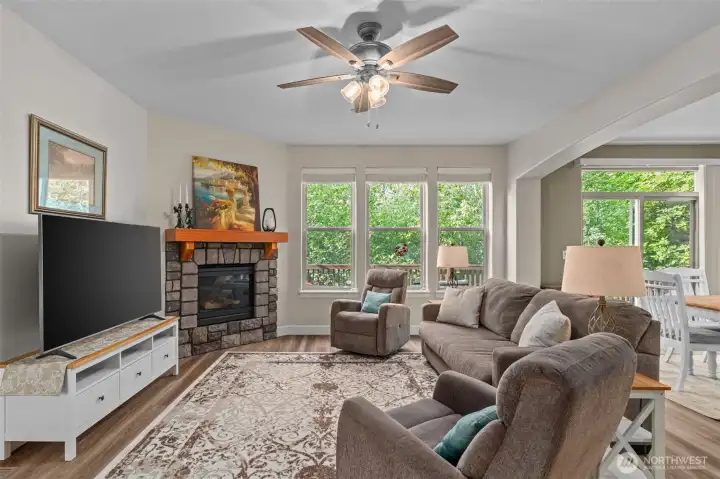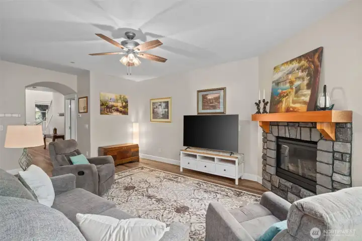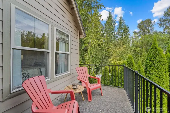 Nestled in the sought-after Camas community of StoneLeaf, this updated 3 bed, 2.5 bath home combines charm and modern living. Tucked away at the end of a dead-end road, this serene retreat offers both tranquility and exclusivity. The home offers significant updates, including a new roof, interior and exterior paint, LVP flooring, and kitchen countertops and appliances. An open-concept layout creates a seamless flow, perfectly suited for comfortable living and entertaining. The extra-large primary is a true sanctuary, complete with a balcony and sitting area. Outside, the fenced, low-maintenance backyard has a spacious deck overlooking a greenbelt, providing the ultimate private escape. The HOA takes care of front yard landscaping.