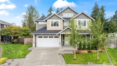 Absolutely Fabulous, Move-in Ready Bonney Lake 2-Story in Indigo Ridge situated on a large 0.23 acre cul-de-sac lot. Grand entrance w/Juliet balcony, built-in shelving, spacious great room floor plan w/gas fireplace that is open to the designer gourmet kitchen w/island, 6-burner gas range, butlers pantry & slider to the fenced backyard. The main level also features a powder room, den w/French doors + a mud room leading to the 2-car tandem garage. The upstairs features a luxurious primary bedroom suite w/5 piece bath & walk-in closet, 3 addt'l bedrooms, laundry room + a wonderful loft/bonus room w/plenty of storage. You will love the craftsmanship & upgrades throughout & the covered front entrance & rear patio. Quick Hwy 410 Access & more