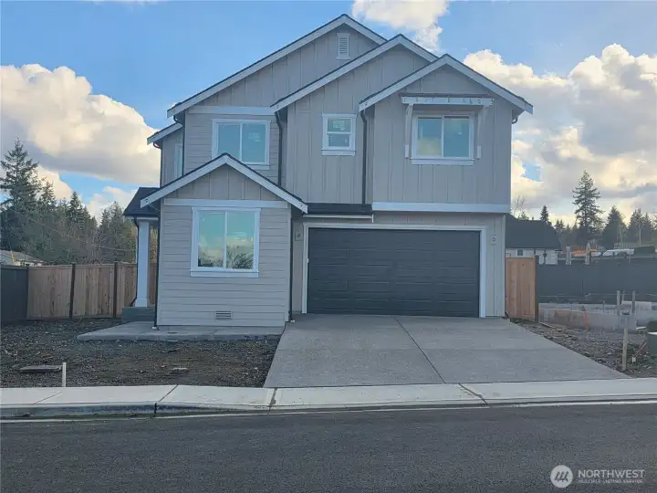 Desirable corner lot in new home community ideally located near Fruitland Elementary in the highly sought-after Puyallup School District. Thoughtfully designed home offers open, light-filled layout with main-level flex space and adjacent ¾ bath. Designer upgrades include 8’ interior doors on main level, custom lower cabinetry flanking the fireplace, coffered ceilings in primary suite, and convenient man door from garage to side yard. Chef-inspired kitchen features quartz countertops, spacious island, soft-close cabinetry, and stainless steel appliances including induction range, opening seamlessly to dining area and great room. Linear fireplace with mantle anchors the space, dining area flows to covered outdoor patio for year-round enjoyment. Luxurious primary suite offers dual vanities, glass-enclosed tile shower, and soaking tub. Additional features include heat pump with A/C, washer and dryer, EV pre-wire, fully landscaped, fenced backyard, and two-car garage. Easy access to Hwy 512, Good Samaritan Hospital, and the local farmers market.