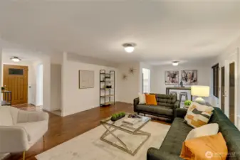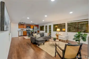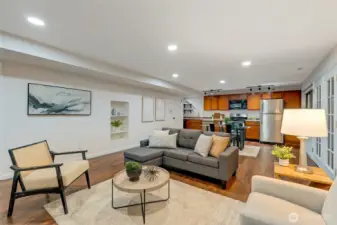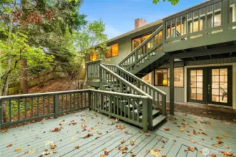 Spacious daylight rambler in Fairwood, just shy of 3,000 SF with two seperate kitchens! Main floor features an open concept living space with new kitchen cabinets & counters, primary suite with full bath, plus 2 additional bedrooms & full bath. Living room is filled with natural light from tree-lined windows and opens to a large deck—perfect for entertaining. Lower level offers a second kitchen—ideal for multigenerational living or guests, 2 bedrooms, full bath, and walk-out access to another deck. Includes 2-car garage and plenty of storage. Tons of room to spread out or space to bring everyone together!