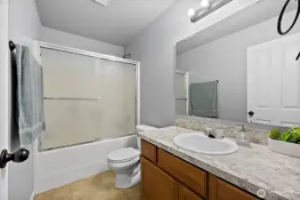 Welcome to Courtney Ridge Condominiums,. This home highlights 2-panel raised interior doors, tile in the entry and bathrooms, custom cabinetry, and window treatments throughout. The kitchen comes complete with a microwave hood, refrigerator, and dishwasher, complemented by upgraded lighting and hardware. A built-in security system adds peace of mind. Conveniently located just minutes from shopping, dining, and with easy access to downtown Puyallup and Tacoma, this condo blends style, comfort, and everyday convenience.