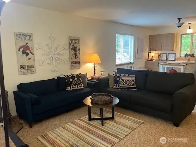 Just in time for winter! Compact & affordable 800sf two bedrm corner cabin in desirable Crystal River Ranch. Fully fenced & gated and close to White River beaches, walking trails, clubhouse, picnic areas, playfields & horse corrals. Divided bathrm, utility rm, propane fireplace, eat-in kitchen w/SS appliances, metal roof, wrap around deck, 200sf outbuilding, shed & automatic generator. Starlink satellite internet. Deck area reinforced & hot tub ready. Great proximity to Crystal Mountain Resort & Mt. Rainier Nat'l Park for year round adventures. Roving elk herd provides entertainment. Ranch is an elk habitat. Full time caretaker maintains water system & drives patrols. County maintains roads. Mountain memories & traditions start here!