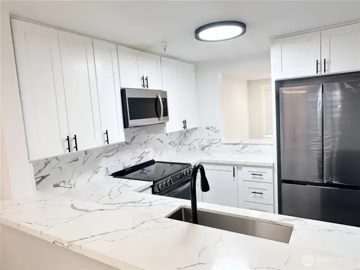 FULLY UPDATED & TURNKEY! Don't miss this bright, lower-level 2-bed, 2-bath unit at Sunset View Condominiums. Experience true move-in readiness with a full kitchen and bath remodel in 2023, new LVP floors, and fresh interior/exterior paint. This unit boasts new siding, a spacious, light-filled open floor plan, and a separate dining area. The private Primary Suite features an en-suite bath and walk-in closet. Enjoy a thoughtful layout with the second bed/bath on the opposite end, plus the convenience of a full-size washer/dryer and private patio with storage. Includes one assigned parking and plenty of guest parking space. An unbeatable location close to I-405, parks, and shopping at The Landing. Welcome Home!