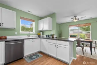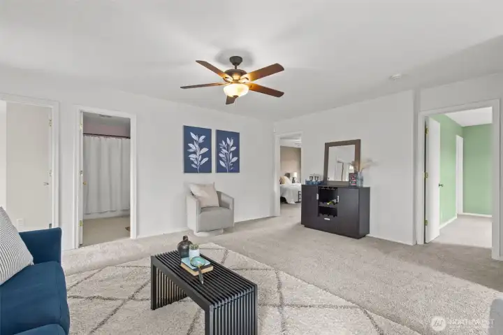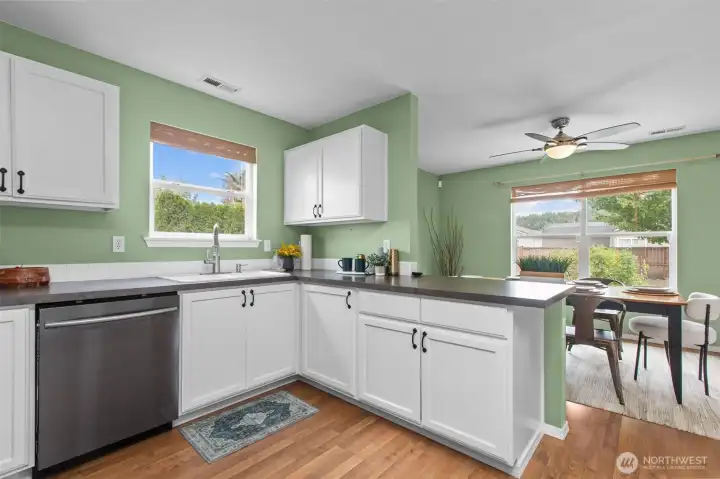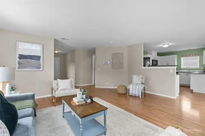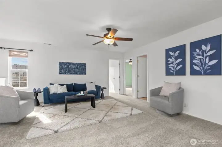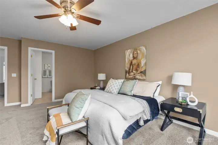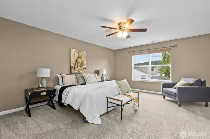 Welcome to the Orting Valley with amazing Mt. Rainier views and small town life! This Village Green home invites you with an open flow and great room between living room, kitchen, dining and expansive walk-in pantry. The beautifully refreshed home is move-in ready with new carpets, vinyl floors, and new tile and vanities in bathrooms. The well appointed upstairs has 3bd including a huge primary suite, office, loft and laundry room. Find a gardener's delight with a flat, fully fenced yard with porch, shed, dog run, raised garden beds and space for RV/boat parking. Enjoy your life outdoors with 3 resident-only parks, easy access to the Foothills Trail, Downtown Orting, and the unbelievable views of Mt. Rainier that never get old!