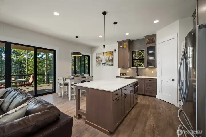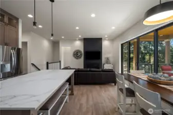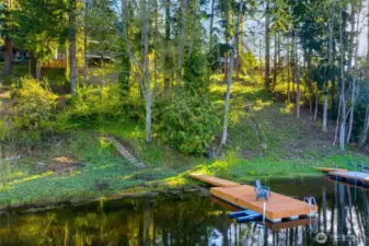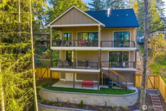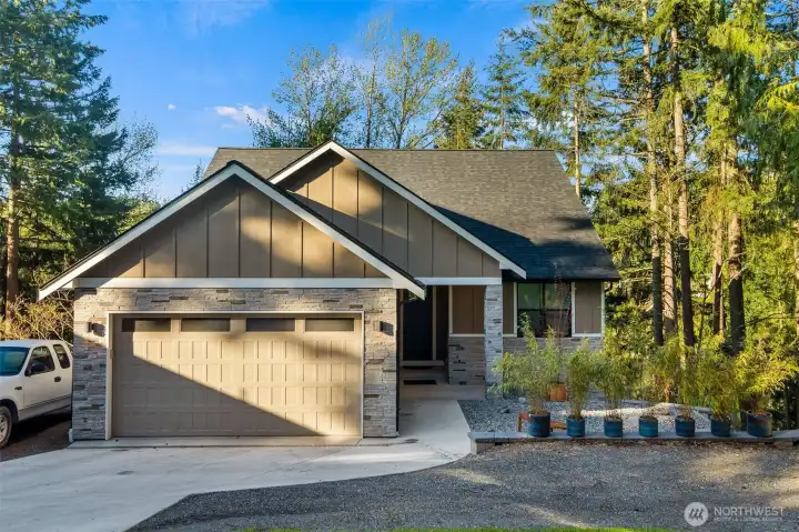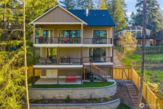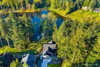Custom built waterfront home in quiet, woodland setting on Hidden Lake. Quality materials used throughout this well-designed home that is built to last. 3 Beds + Ofc. 10 ft high ceilings w/ 8 ft drs, & 30-yr waterproof engineered flr. Sliding glass drs lead out to 2 low maint Trex decks w/waterproof pine ceilings, extending living space. High-end SS kitch apps w/large European Dekton island. Gas fireplace is wrapped in Dekton too. HOA access to 3 private parks on Lake Tapps w/fun dog park & boat launch. Downstairs is perfect for movie nights or multi-gen living w/2nd full kitch. Self-maint Kohler generator & AC. This home is a perfect blend of activities & relaxation.