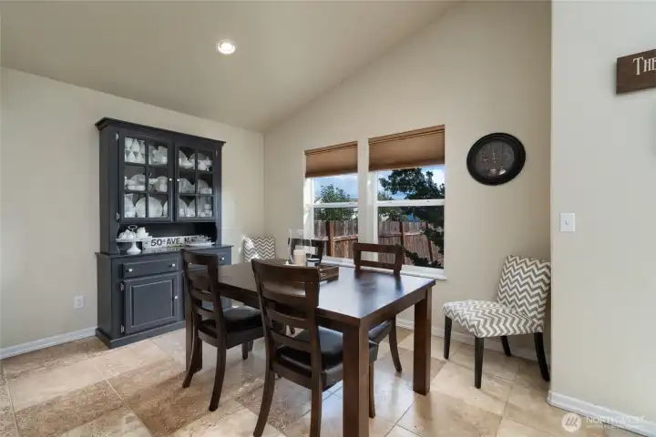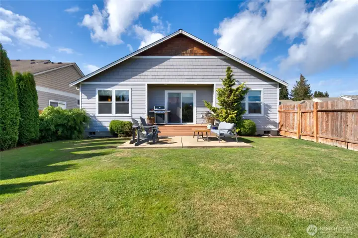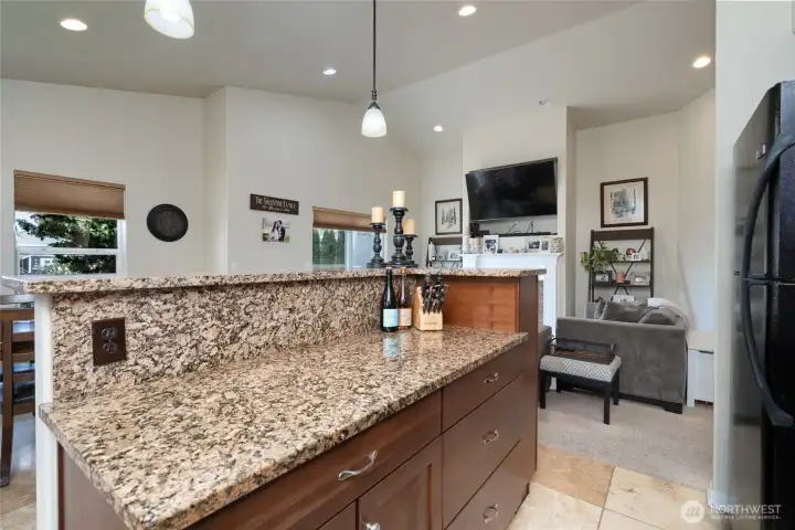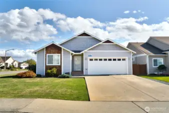 Move-in ready 1,611 sqft rambler on a corner lot featuring 3 bedrooms & 2 baths. Warm and inviting layout offers vaulted ceilings, an open floor plan and a cozy gas fireplace w/custom-built mantle. The kitchen has granite counters, an island with tall eating bar and open dining area. Primary suite features a full bath with double sinks and walk-in closet. A 2-car garage adjoins a utility room with sink for added convenience. Enjoy a fully fenced backyard and patio that is perfect for relaxing or hosting gatherings. This home combines both comfort and function—located close to schools, shopping, and local parks.