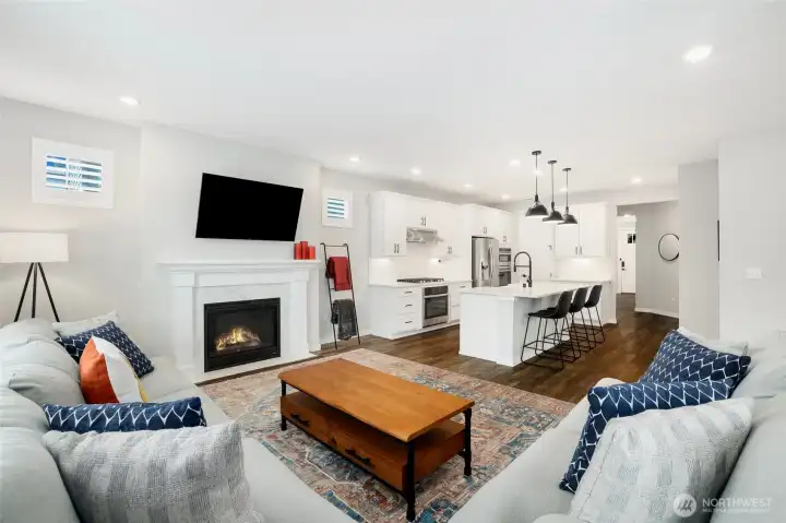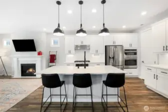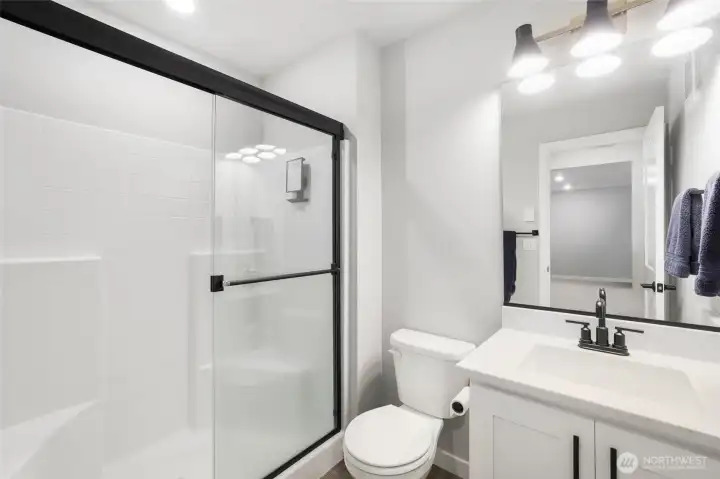 Stunning Holston II in Ten Trails showcasing over $150K in high-end upgrades! 6-bedroom home includes a main-level guest suite with half bath, open great room with tile-surround gas fireplace, and a gourmet kitchen featuring Cambria quartz counters, Brighton white cabinets, farm-style sink, Kitchen-aide stove & GE Profile appliances, and soft-close drawers. Elegant hardwood floors, modern black hardware, upgraded lighting, and two-tone Repose Gray paint elevate the interior. The primary suite offers a tray ceiling and spa-inspired bath with frameless glass shower and quartz counters. Enjoy a fenced yard, deck with stairs, A/C, generator prewire, and premium finishes throughout, plus abundant natural light, close to parks and trails.