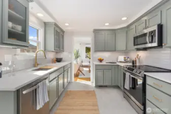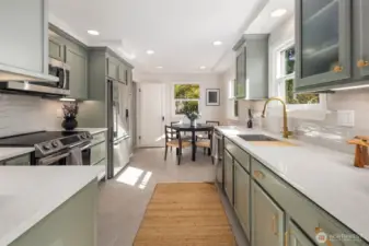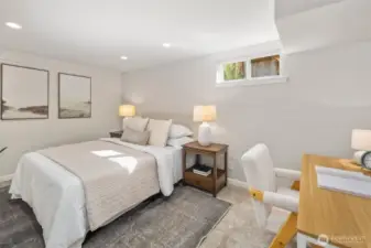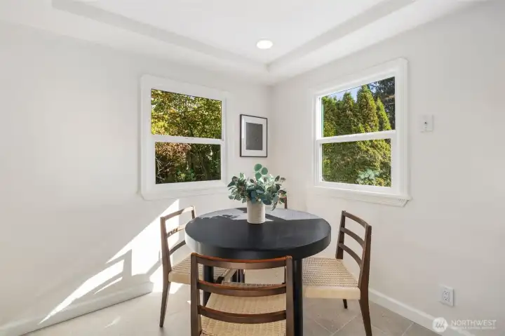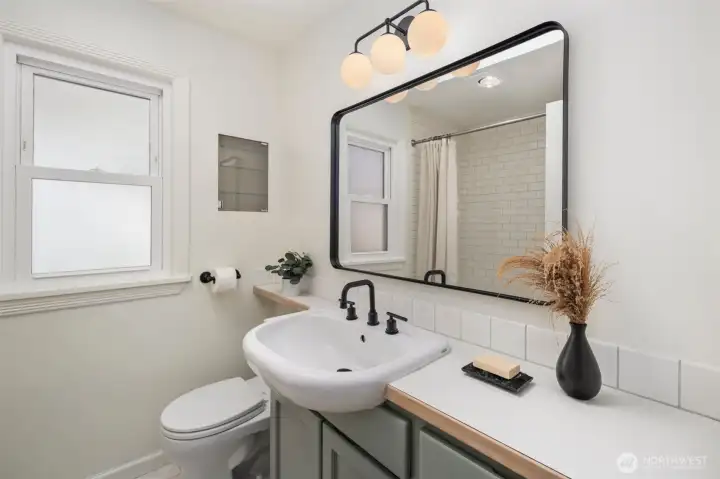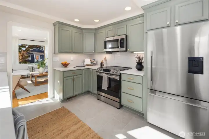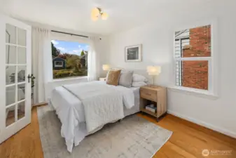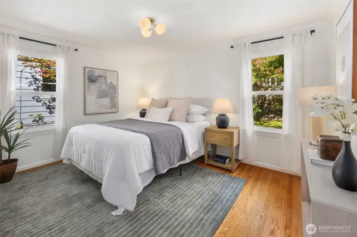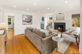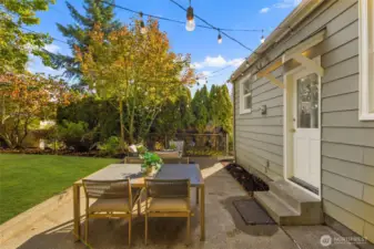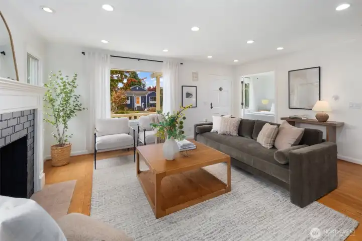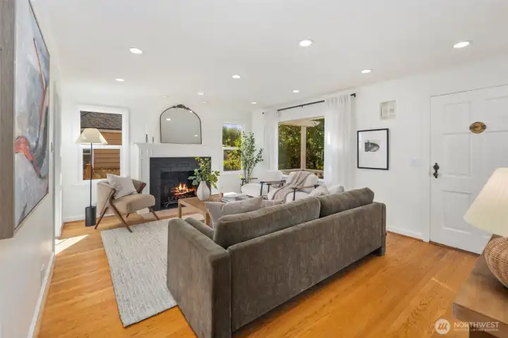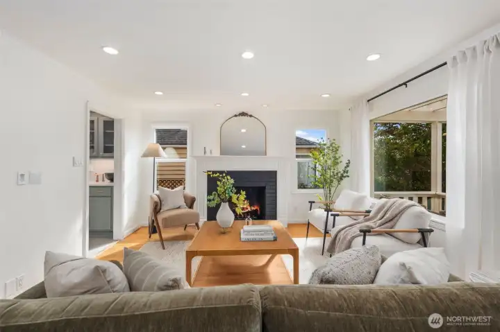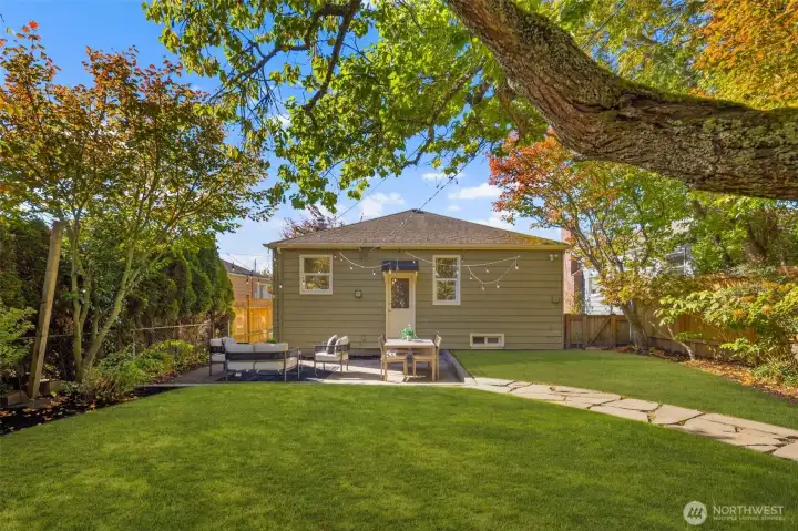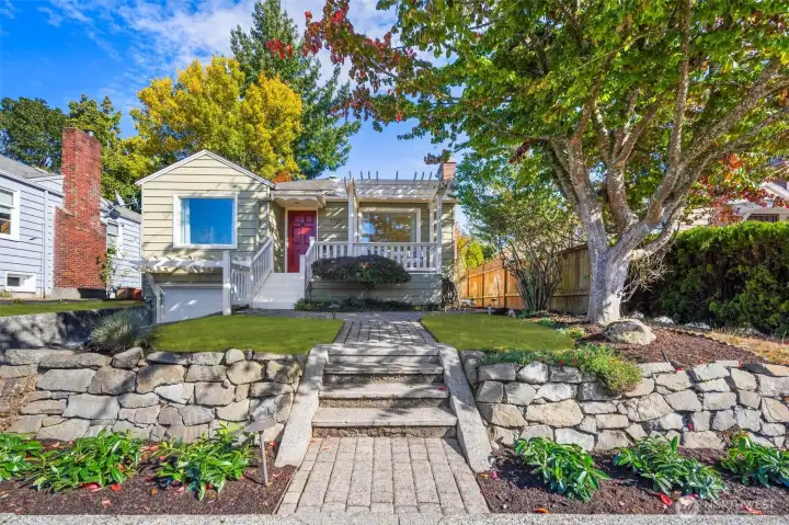On a peaceful street just steps from Loyal Heights Playfield, this classic Cape Cod blends timeless charm with modern comfort. Southern and western exposure flood the home with natural light, showcasing original Mench millwork, hardwood floors, and a cozy wood-burning fireplace. The stylishly remodeled kitchen connects seamlessly to the lush backyard with a spacious patio—perfect for entertaining. Two bedrooms and a full bath complete the main level, while the lower level offers a third bedroom, ¾ bath, versatile rec room, generous laundry area, and attached garage. With recent upgrades to plumbing, electrical, and lighting, this home pairs peace of mind with preserved period character.