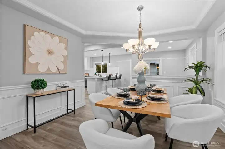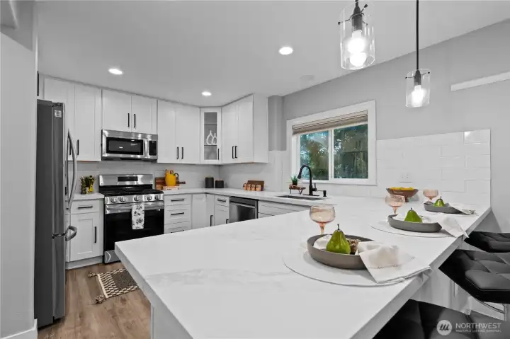 Tastefully remodeled and move-in ready, this spacious 3-story home sits in the heart of Kent, close to everything the city has to offer. The main floor features an open-concept living area with luxury vinyl plank flooring, extensive crown molding, and a cozy fireplace. The modern kitchen boasts brand-new appliances, new cabinets, and ample counter space. Upstairs, the primary suite offers a private five-piece bath—your perfect retreat. A large bonus room on the lower level can be used as a rec room, home office, or 4th bedroom. With new paint, carpet, and flooring throughout, this stunning remodel is truly a must-see!