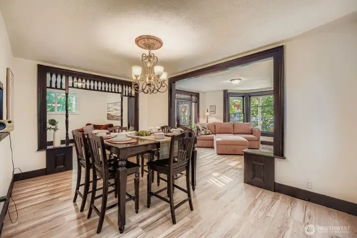 Charming RARE Victorian in the heart of Central Tacoma with Central AC! This character-filled home features beautiful woodwork, original charm and cozy nooks throughout. Thoughtful updates of fresh interior paint, newer Furnace, new vinyl LP flooring, New Moldings and refreshed bathrooms. Large windows and skylights bring in tons of natural light. Main floor offers flexible living/dining areas, a full bath, kitchen and spacious bonus enclosed sunroom. Upstairs you'll find three beds and a full bath. so much potential in rear yard with alley access, plus a lovely front yard for relaxing. Fantastic location near shopping, dining, and with easy highway access. So much potential and comes with a free home warranty plan for buyers!