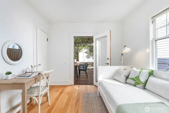 Light-filled 3 bed, 2 bath home in the heart of Seattle’s Roosevelt neighborhood! Built in 1924, this charming home blends classic details with modern updates—fresh paint, newly refinished hardwood floors, and solid surface kitchen counters. Primary suite includes a walk-in closet and deep soaking tub. Spacious back deck with built in seating walks onto a fully fenced yard. Large storage shed offers space for your gear, toys, or favorite projects. Just steps from the light rail—ideal for commuters—and a short walk to Green Lake, Whole Foods, cafes, bars, and dining. Easy access to I-5 adds extra convenience. A perfect mix of character, comfort, and location. Zoned LR3 (M2) allows for future development potential.