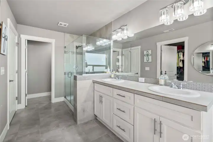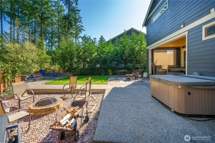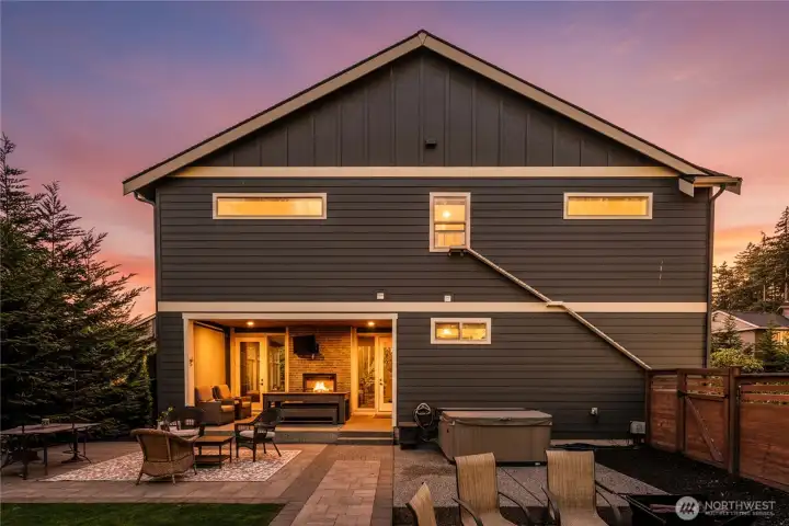 Tehaleh Dream home on desired Forest Park Greenbelt! Resort style backyard is private w/beautiful views, hot tub, covered & expanded patio w/ indoor/outdoor fireplace, fire pit, garden space, seating areas and more! Inside a grand engineered hardwood staircase sets the tone for the 4 bdm, home w/ 2 flex rooms for gym?office? theater room? or use one as a 5th bdm. Walls of beautiful wrapped windows. The primary has a peekaboo view of the mountain, spa inspired bath w/stand alone tub, lg walk-in closet, the other bdms have greenbelt views. The generator conveys/ with dedicated outlet & AC. Tehaleh features 40+ miles of trails, walk to the many parks right from the front yard trail! Rare home, very few of this floor plan built in Tehaleh!
