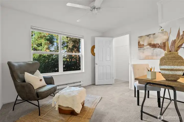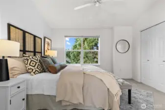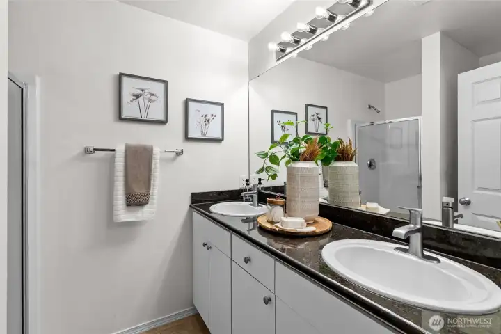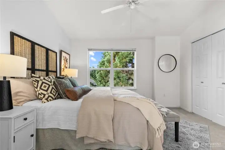 Welcome to the most desirable layout in the sought-after Wildwood community! This 3-bedroom end unit offers the perfect combination of space and convenience—just minutes from freeways, park & ride, shopping, and dining. The open floorplan features a spacious kitchen with island, two large bedrooms with custom closets upstairs, and a private guest suite or office with full bath on the lower level. Enjoy a private balcony, attached garage, and a reserved parking space right at your front door.