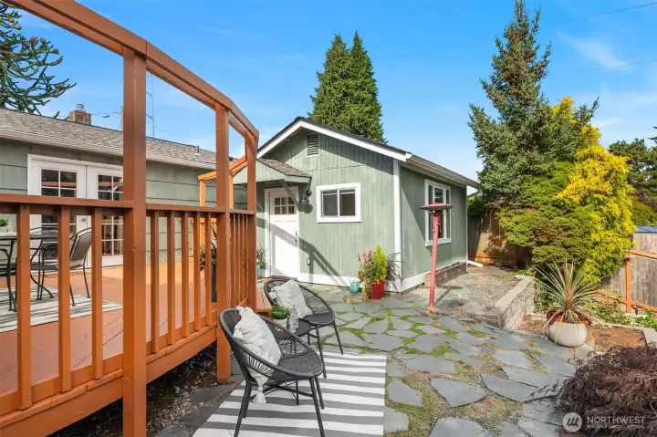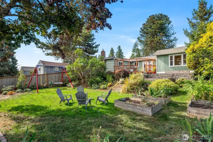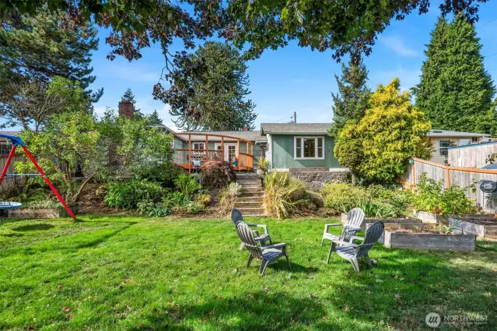 Delightful mid-century rambler on a large 7,620 sf lot with a detached studio, a backyard that gardener dreams are made of & the most enchanting Monkey Puzzle Tree you’ve ever seen! Offering desirable one-level living, this home has been loved and cared for w/ recent updates including a new roof, A/C, primary bath w/ heated floors, updated lighting + appliances. Ideal floorplan for everyday living w/ plentiful space for entertaining and reveling in your outdoor oasis surrounded by hundreds of flowers & gorgeous trees. The studio offers a multitude of uses w/ a Murphy bed & ½ bath - home office, guest space, yoga or art studio? Steps to Westcrest Park & Dubsea Coffee, a short drive to beloved Lincoln Park & the water, and quick access to 99.