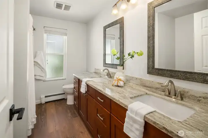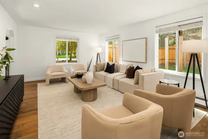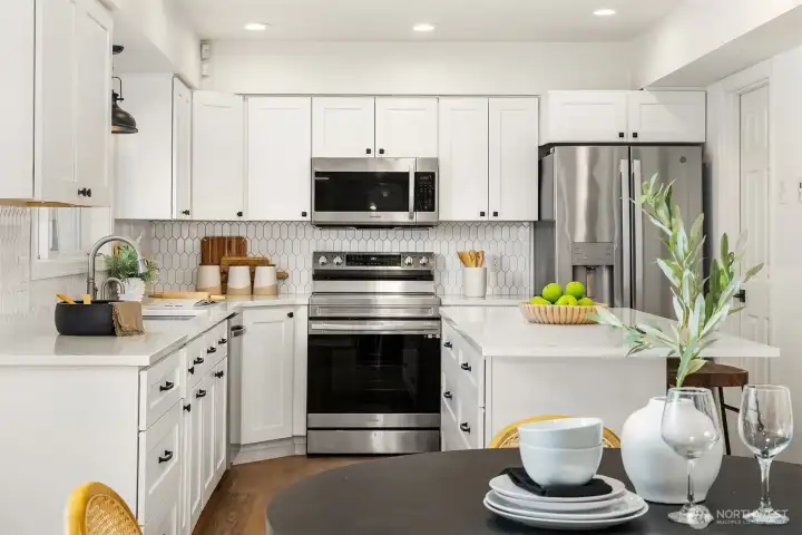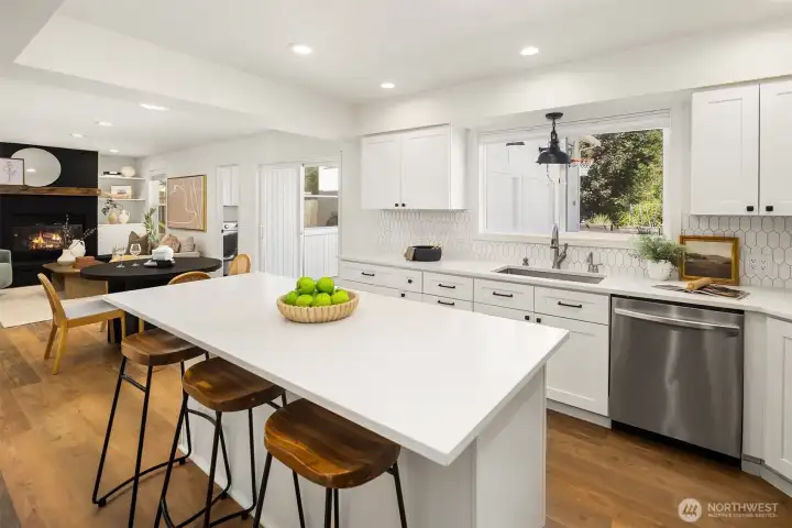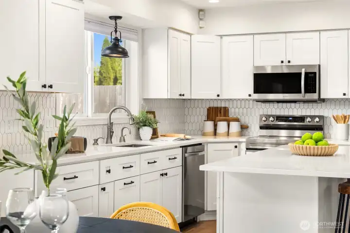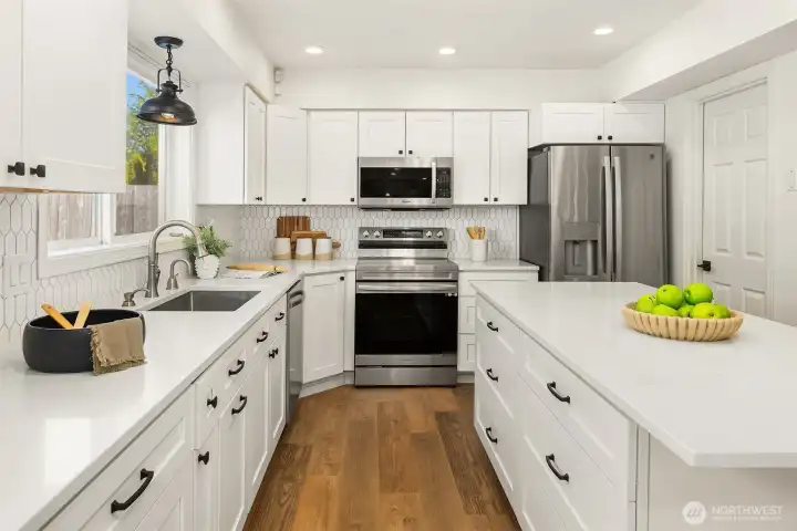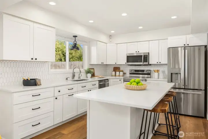 Intimately nestled on a tranquil cul-de-sac and just moments from the lush Soos Creek Trail, this Kent stunner spans across 3,020sqft of fully renovated living space and sited on a generous ¼-acre lot. Offering 5 bedrooms, 3½ baths—including a luxe guest suite above the garage (generates $2k a month in rental income). Professionally reimagined, show-stopper kitchen flaunts, designer picket-tile backsplash, and full suite of stainless appliances. Outside, the ambiance continues—fruit tree-dotted landscaping, greenhouse, expansive gated parking for RVs or toys, workshop with power, and total privacy among mature growth. Prime location with seamless access to I-5, 405, 167, shopping, major employers and highly rated schools.