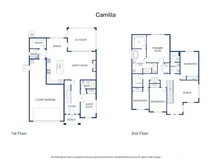 Welcome to The Camilla at The Summit at Steel Lake—in this new Soundbuilt Homes community! This functional home offers 27900 sq. ft. with 5 bedrooms including a main floor guest suite! Main floor also features a great room concept and a desirable open layout. Upstairs a spacious primary suite & 3 additional bedrooms. Fully fenced 7,278 sq. ft. lot—larger than most new construction. Features include LVP flooring, designer finishes, a covered patio, and an energy-efficient heat pump. Builder is offering a generous $10,000 buyer incentive with use of preferred lender. Don’t miss your chance to be among the first to own in this desirable neighborhood! Home under construction, images not actual home.