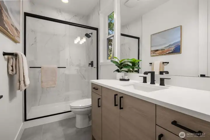Welcome to Briarstone, a 5 home luxury boutique community in Bothell’s top-rated Northshore SD. Minutes from shopping, dining, & fast Seattle/Eastside access. This upgraded floorplan with 3 car garage has an expansive open floor plan- spacious entrance w/an office & powder rm for guests lead into chef inspired Kitchen w/Thermador Appl, 6 burner Gas cooktop, walk in Pantry, Great Rm/Dining Rm. Main-floor also hosts a Mud Rm & Bedroom suite perfect for Multi-Gen living. Upstairs- Spa-inspired Primary retreat w/WIC, Bonus Rm, Laundry w/sink & cabinets, spacious Secondary Beds, one w/ensuite Bath, offering an abundance of space & comfort. Each home comes w/Refrigerator, Electric Heat Pump -which provides your A/C & Gar Door Opener with remote!