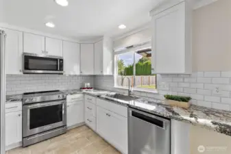 Cape Cod–inspired charmer with a huge, level backyard built for PNW living. A covered front porch welcomes you into light-filled spaces with updated flooring. The living room features large windows & cozy fireplace, opening to the dining area and upgraded kitchen with granite counters and stainless appliances. 2 bedrooms on the main + 2 bedrooms up plus a loft offer flexible use (guest room, office, play, fitness). The private owner’s suite includes an updated bath. Step outside to an amazing covered patio for year-round BBQs & gatherings, overlooking the fully fenced yard—great for pets and play. 2-car garage with extra storage. Quick I-5 & Hwy 9 access for easy commuting. Minutes to Jennings Memorial Park & trails & Ebey Waterfront Park.