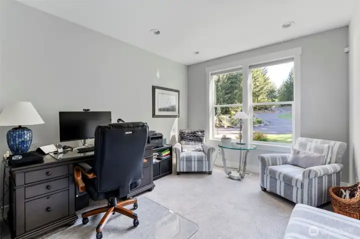 This one-level home nestled in a gated community on 10 acres has sweeping mountain and sunset views. Soaring vaulted great room, spacious chef’s kitchen with second sink offer refined spaces for entertaining. Walk-in pantry includes counter for additional workspace/storage. Each bedroom has own walk-in closet. Elegant primary suite boasts tray ceilings, spa-inspired bath, and dream-worthy walk-in closet/dressing room. The house has 8ft doors, elegant study, large laundry room with built-in desk and storage, and separate mud room. Enjoy the covered deck, fully irrigated lawn, fire pit, fenced garden, whole-house water filtration, tankless hot water, and generator. Over-sized 3-car garage includes pull down ladder to attic for extra storage.