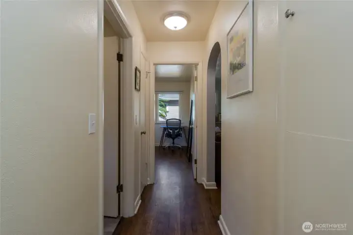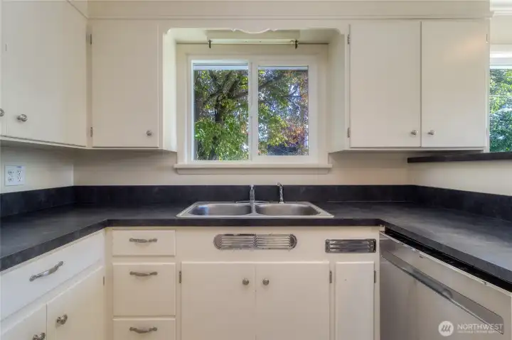 Centrally located adorable 1950 craftsman bungalow with extra large fully fenced back yard. Original hardwood floors and charming details throughout, the stylish living room greets you with built-in bookcases and brick fireplace. Bright & Open Kitchen has lots of storage, dining nook, new dishwasher, and new butcherblock countertop at your convenient coffee station. Main floor has two large bedrooms with ample closet space, and full bath with new tub+surround. Lower Level is a blank slate! Lots of space for storage, home office, or build out extra bedrooms or primary suite. Detached garage is the perfect workshop, and covered patio creates the perfect back yard sanctuary. Upgrades: New windows+door, 2021 HVAC, new fencing+gate, landscaping.