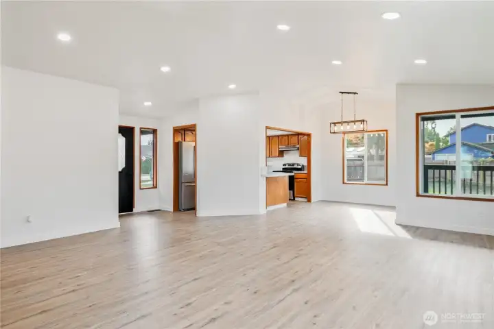Turn-key and tastefully remodeled, this beautifully updated home is nestled in a quiet, well established neighborhood. Recent upgrades include a newer roof, luxury vinyl plank flooring, and new Milgard windows throughout. The kitchen shines with stainless steel appliances/countertops and fresh interior/exterior paint gives the home a crisp, modern feel. Vaulted ceilings plus the comfort of a heat pump for year round climate control. Big lot with potential for a shop, and RV parking. Nothing to do here but move in and enjoy this gem with space, style, and convenience!