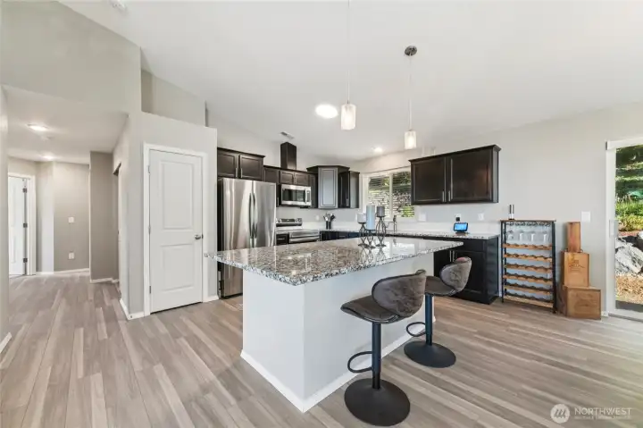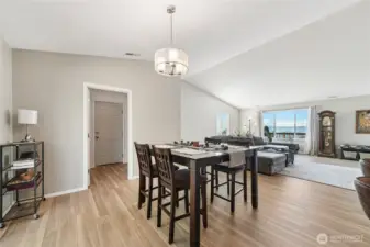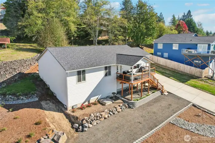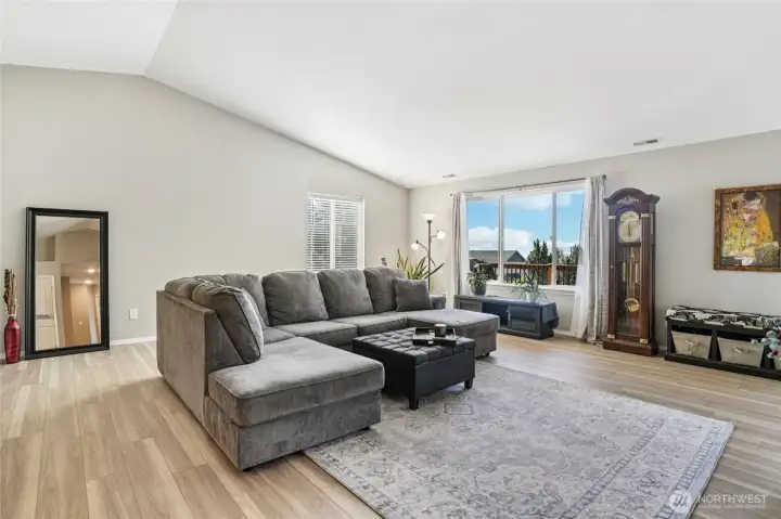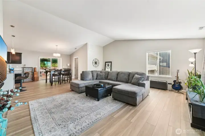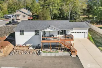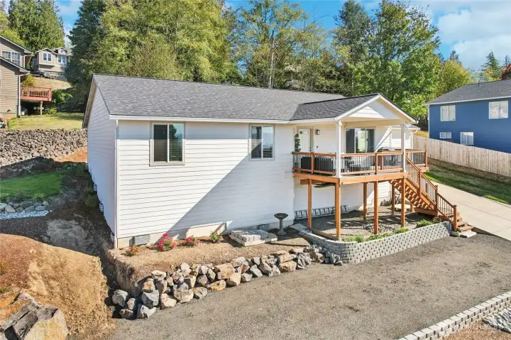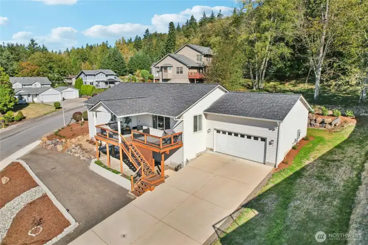 Nestled in the hills, this single-level home captures serene river views & breathtaking evening skies. A welcoming covered deck sets the stage for enjoying the beauty of the Pacific Northwest. Inside, calming finishes, vaulted ceilings, & expansive windows fill the home with natural light, showcasing sweeping territorial views. The sleek kitchen offers abundant cabinet & counter space, SS appliances & convenient eat-up bar. LVP flooring flows seamlessly throughout, tying each space together. Outside boasts parking for 10 vehicles, a leveled 2nd driveway for added convenience, & professional landscaping with hundreds of new plantings that will soon create both privacy & elegance. Functional design offering easy entry from garage to main.