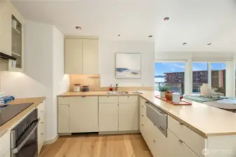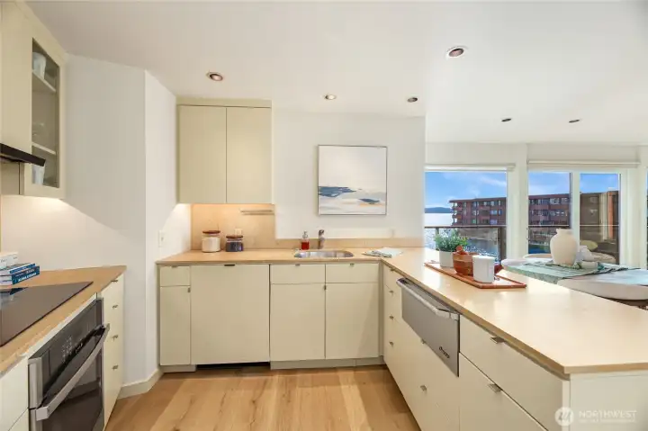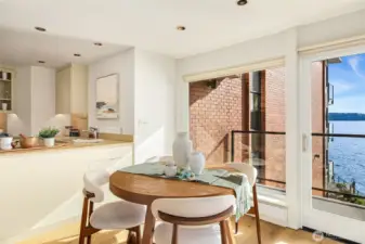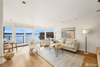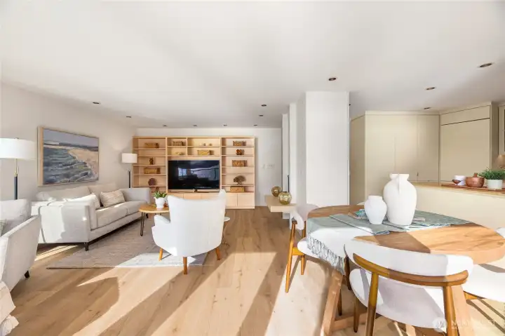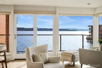 Nestled along the shores of Lake Washington at the quiet end of Madison Park, sits Lakeshore West, an idyllic condo community. This sun-drenched 3rd floor unit enchants with mesmerizing southern views of the lake. Floor to ceiling windows in the dining & living room & Scandinavian style kitchen make modern living easy & enjoyable. Large primary suite with a wall of built-in wardrobes + 2nd BR & guest bath. This is one of the few homes with washer/dryer in unit. Refreshed with brand new engineered hardwood flooring & paint, there is nothing to do but move in & experience life in this vibrant enclave. Secured parking, on-site manager, fitness room, private community dock & even a book library complete the amenities. Live along the lake!