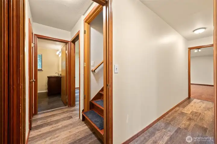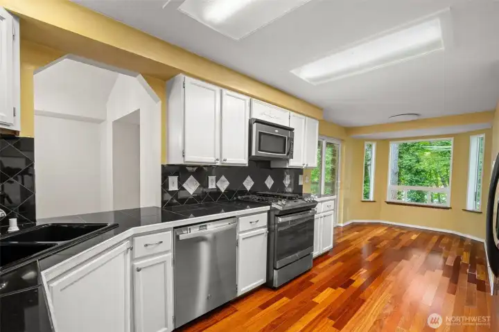 This beautiful 5 bedroom home offers style, comfort, and functionality. Designed to accomodate multi-generational living, it's as warm and inviting as its location is convenient. The Brazilian Cherry floors add a beautiful and elegant touch. The cathedral ceilings create an open and airy atmosphere. The covered deck is perfect for enjoying territorial views. With granite tile countertops, the kitchen comes with all appliances included. The huge family room is ideal for entertaining, relaxing, or creating a private space for guests or extended living. Minutes from freeway access, it's quick to head north, south, east, or west. You’ll feel connected to everything while still enjoying the charm and serenity of life on Tumwater Hill.