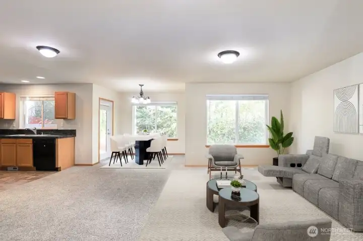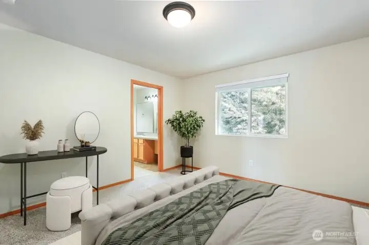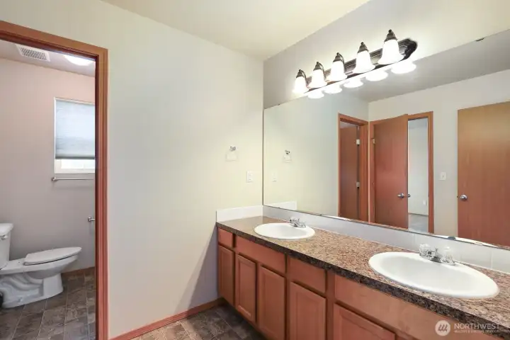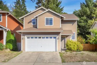 This charming two-story home offers a perfect blend of comfort and functionality. Enjoy a fully fenced, low-maintenance, mostly shaded backyard with a patio—ideal for relaxing or entertaining. The main level features a bright open-concept kitchen, dining nook with patio access, spacious living area, and a convenient half bath. Upstairs, find three bedrooms and a laundry room for added ease. The primary suite boasts a walk-in closet and private ensuite with a separate soaker tub and shower. Two additional bedrooms share a stylish Jack-and-Jill bath with dual vanity. Complete with a two-car garage and tasteful, neutral finishes throughout, and a convenient East Bremerton location, this home is move-in ready!