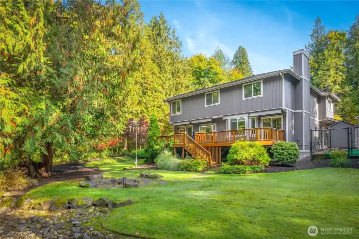 Step inside this beauty. All major systems have been recently replaced in this well-cared-for home. Home features 4 bedrooms upstairs. The spacious primary en-suite features heated floors, soaking tub, and a double-sided propane fireplace for ultimate relaxation. Formal living & dining room, with hardwood floors. Beautifully updated kitchen with adjoining family room & 1/2 bath. Enjoy central AC, sprinklers, and a park-like setting on a quiet dead-end street with a beautifully landscaped private yard, complete with uplighting. Fenced dog area. A seasonal creek adds charm (not in a flood zone). Laundry is in the garage. Just 6 minutes from downtown Issaquah. Pride of ownership shines, same owners for 25 years! Highlights in supplements.