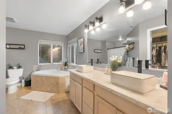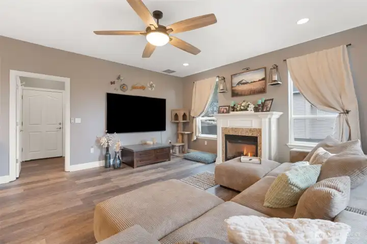 Welcome to this stunning 3-bedroom, 2.5-bath home offering 2,560 sq. ft. of living space on a .28-acre lot with fresh interior paint. The home features a spacious living and dining area, a cozy gas fireplace, and a well-appointed kitchen with quartz counters, quality cabinets, and stainless steel appliances. The primary suite offers a jetted tub, separate shower, and a bonus sitting area. Step outside to a large deck overlooking the fenced backyard, garden space, and breathtaking territorial and Mt. St. Helens views. An attached 2-car garage with bonus area completes this property. Don’t miss your chance—schedule a tour today!