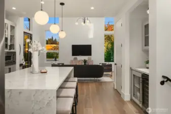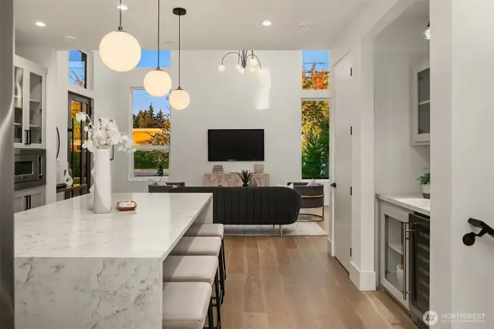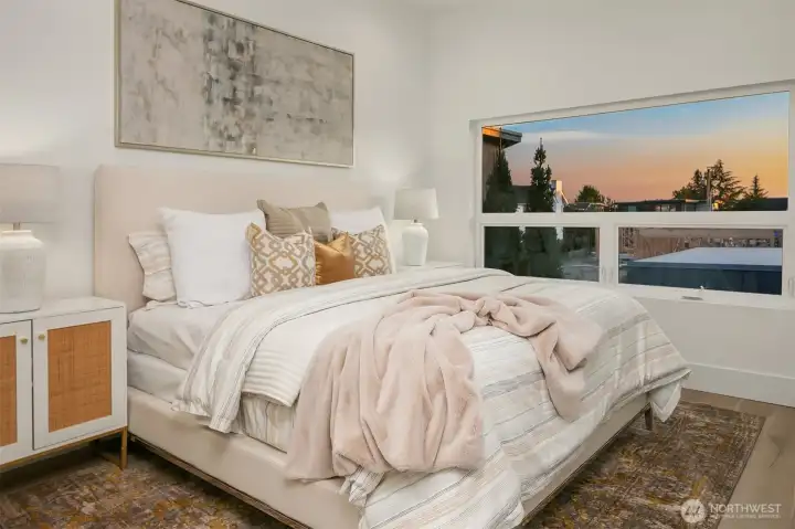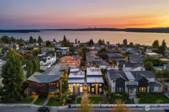 Nestled in coveted West of Market, this newly built home blends luxury & comfort steps to DT & the waterfront. Upon entering, a stunning great room w soaring 16-ft ceilings & wood-wrapped beams, while oak hardwoods flow seamlessly throughout. The chefs kitchen showcases double waterfall quartz island, full slab backsplash, Viking range, & walk-in pantry. Accordion doors off the dining open to covered patio w gas stub & expansive backyard. The versatile lower level provides more space to live or entertain w rec room, kitchenette & bed. Ascend to upper level w ensuite & primary suite w dual closets, spa bath w heated floors, floor-to-ceiling tile shower, & exclusive rooftop deck access w over 500sf of panoramic views of the lake & mountains.