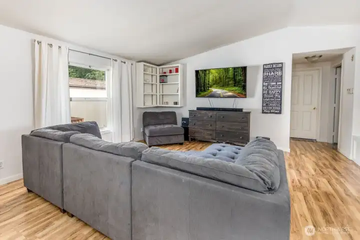 Nestled in the East Hill area of Kent is this stylishly upgraded 3-bedroom double-wide manufactured home. The home includes laminate hardwood flooring along with 2 modernized bathrooms throughout. With each bedroom including their own walk-in closet and a full bathroom in the primary suite. Enjoy your meals in the lovely breakfast nook and relax in the open concept living area filled with natural light. In the back is a storage shed ready for you to store any essentials. Updates: new water heater and siding added to porch steps. Conveniently placed close to shopping, dining, and freeway access, this move-in-ready home offers comfort, style, and everyday convenience. Ready for you to add your own touches and updates!