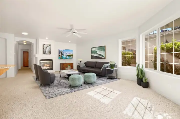 Freshly painted and move-in ready, this charming Skyline condo offers effortless coastal living near beaches, Washington Park, and the Skyline Beach Club. Enjoy a bright, open layout with a cozy gas fireplace and easy single-level design. The spacious primary suite features a walk-in closet and private ¾ bath, while the guest room and full bath provide comfort for visitors. An attached two-car garage ensures convenience and storage. Ideal for those seeking a low-maintenance lifestyle in one of Anacortes’ most desirable neighborhoods.