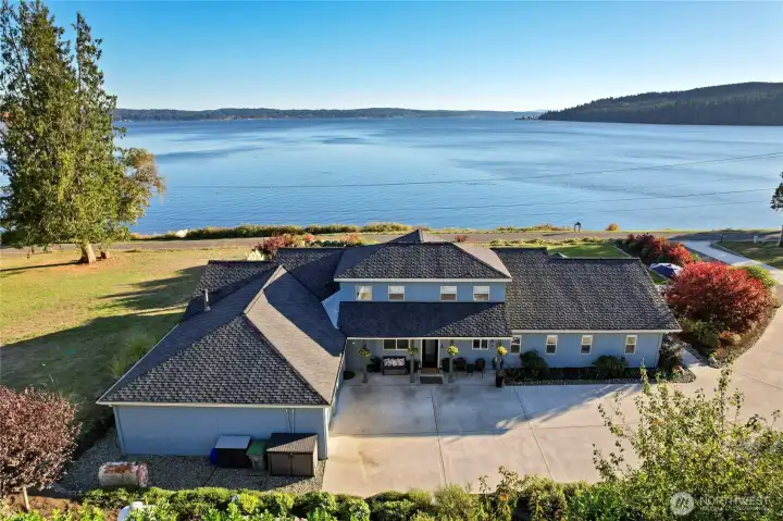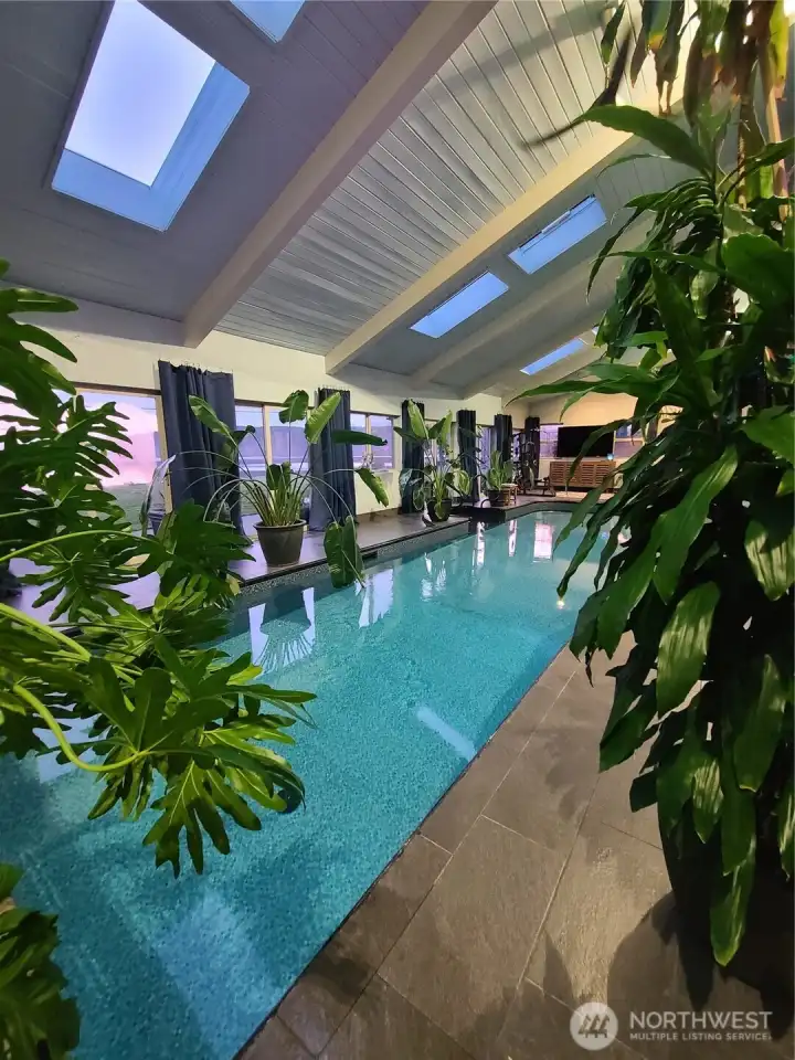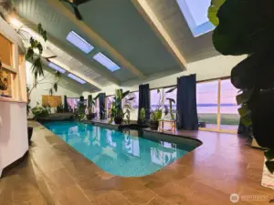 Experience waterfront serenity and timeless elegance on over an acre of property professionally landscaped for privacy, with gorgeous Hood Canal and Olympic Mountain views. Fully remodeled in 2017 (new roof in 2019) this 3-bed, 2-bath home spans nearly 3,600sqft with open-concept living, radiant heated floors, and a stunning indoor heated saltwater pool. Enjoy 150+ft of deeded beachfront for fishing, crabbing, or kayaking, then unwind by the hot tub or firepit beneath endless sunsets and starry skies. A public boat launch just 1/2 mile away completes the coastal lifestyle. Assumable VA loan @ 2.25% for qualified buyers, and a proven short-term rental success (ask agent for all details) —a rare blend of beauty, comfort, and opportunity!