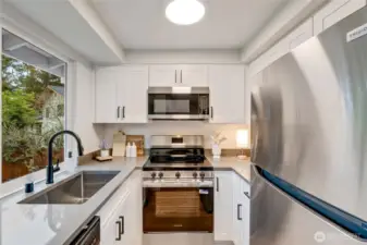 Welcome home to this beautifully updated Edmonds townhouse-style unit featuring 2 bedrooms, 1 bath, and a private garage with plenty of parking just steps from your door. Inside, enjoy modern upgrades including high-end quiet laminate flooring, fresh interior paint, new windows, and a fully refreshed kitchen with shaker cabinets, quartz countertops, under mount sink, & stainless appliances. Custom tiled shower complete this lavish bathroom set up. Step outside to your own private oasis—a fully fenced backyard with a brand-new deck, perfect for relaxing, gardening, or entertaining friends. Best of all, there are no HOA dues, giving you more freedom and value. A must-see home in a convenient Edmonds location close to shopping, dining, & more!