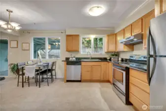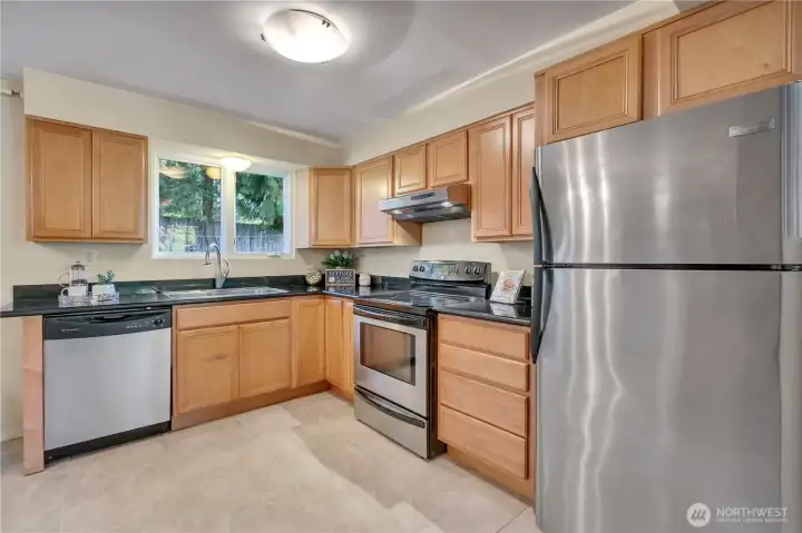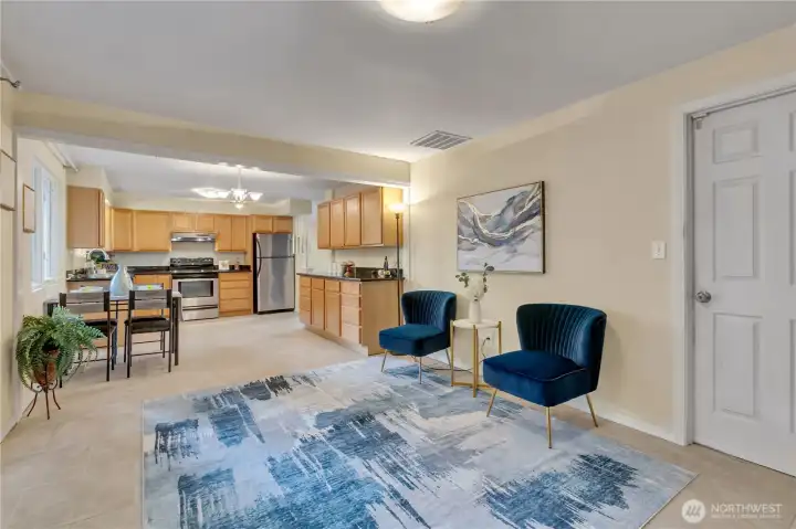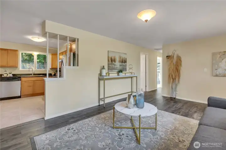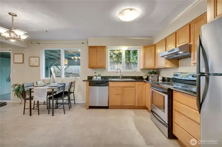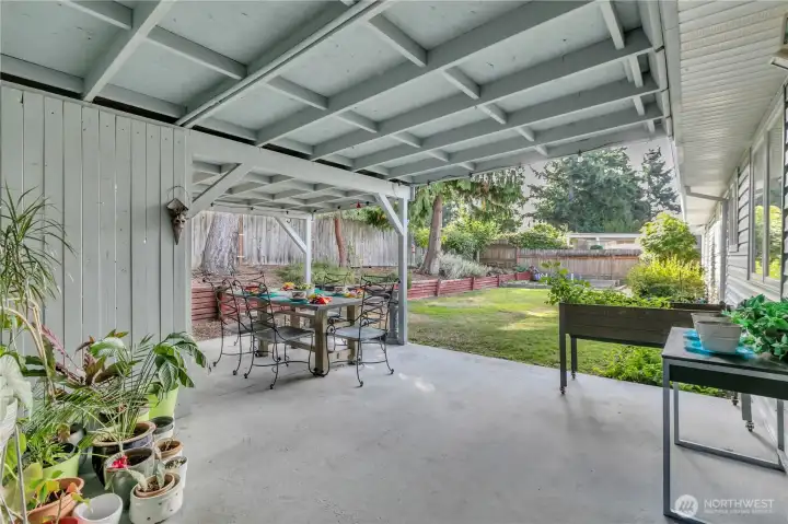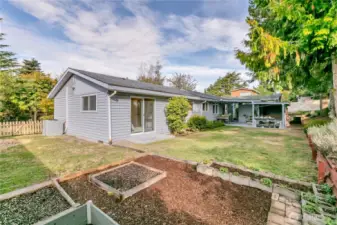 Come see this wonderful new listing in a convenient location. Offering 3 bedrooms, 1 bath, updated kitchen with eating space. Newer windows and slider to your fantastic backyard. Enjoy the newly covered large patio for those gatherings throughout the year. Living room has newer flooring and wood FP insert for the chilly days ahead. Primary bedroom has a slider leading to your beautiful matured landscaped, fenced backyard. Home offers newer pex plumbing, 1.5yr new gas furnace with A/C, all appliances stay, (washer & dryer only about 1yr old) and home has an abundance of storage throughout. Oversized 2 car garage has piping for air tools and good storage above. Lots of parking and just mins to light rail, I-5, 405, 509, schools and Seattle.