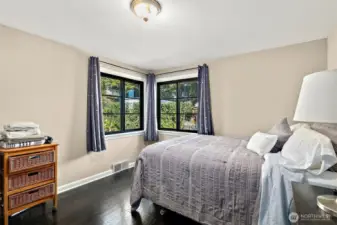 OPPORTUNITY AWAITS - charming rambler with daylight basement offering incredible Lake Washington views! Move in ready or remodel into your dream home. Large picturesque windows, two fireplaces, hardwood floors and French Doors into the Primary. Home sits high above the street on a large corner lot with lush landscaping. Detached garage location provides opportunity for ADU (buyer to confirm with city). Just minutes from I-5, I-405, restaurants, shopping and local attractions such as Kubota Garden, Seward Park and Lakeridge Park. Bring your vision and unlock the possibilities! Pre-inspection completed and available for review.