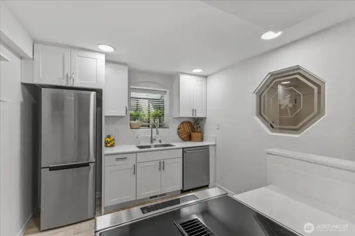 Welcome to Village Park Condominiums in prime location! This charming end unit offers 2 bedrooms & 1.5 baths w/ spacious private deck for outdoor living & entertainment. The home features hardwood floors, updated kitchen & bathrooms, new quartz counter tops, new carpet, new paint & stainless appliances. Convenient amenities include in unit washer & dryer, 2 storage areas and 2 dedicated parking spots with abundant guest parking. HOA includes Water, Sewer, Garbage, Cable & Common Area Maintenance. No rental cap. Centrally located near Yarrow Point & Houghton, with easy access to I-405 and 520, you're just minutes from downtown Kirkland, Bellevue, and a quick commute to Seattle. This is the ideal blend of location, comfort, and convenience.