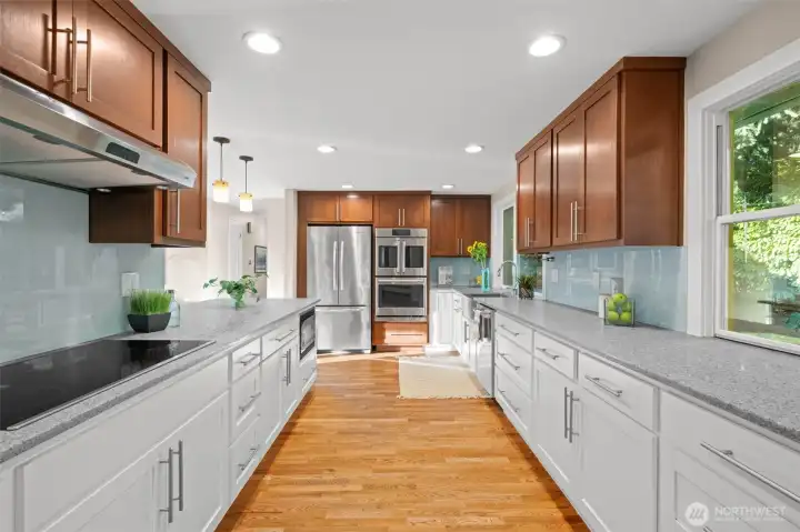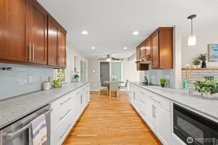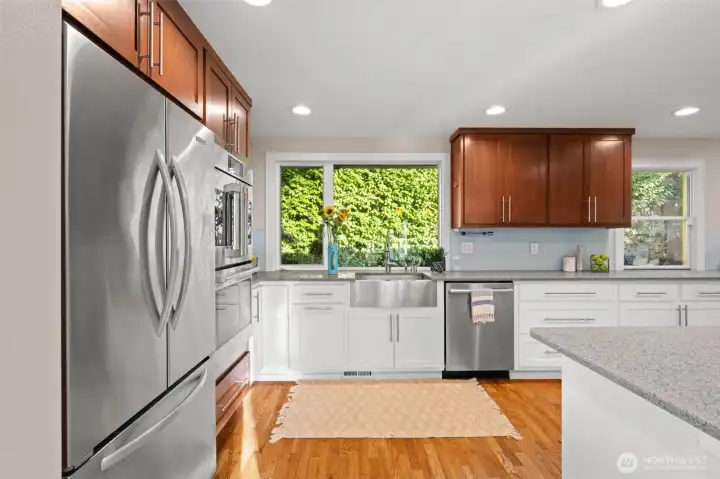 Maplewood South Edmonds, Fastidious Rambler, completely updated to the Nines! Urban Farm vibe low maintenance yard with .34 acre lot! Bee Houses in Front yard, backyard Chicken Coop Deluxe, and Cat Gym to protect your indoor cats, plus fully fenced yard for Fido! The kitchen w/ custom cabinetry, recycled glass counters and backsplash, plus induction stovetop. Recent upgrades include new roof (2019), A/C, hot water heater, and refreshed attic insulation. Hall bath remodel (2023), new interior paint, front doors, insulated garage door, and Level 2 EV charging 2 car garage plus Sprinter Van Custom Carport. Enjoy app-controlled lighting, and handcrafted fireplace mantels from locally harvested wood. Too much to list, come see it for yourself!