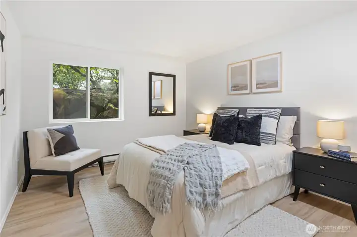 Beautifully updated one-bedroom condo in desirable Seventy-01 community. Fresh updates include a stylish kitchen with new cabinets and quartz countertops, updated bath with modern fixtures and tile surround, new flooring, paint, and lighting throughout. Enjoy the private setting with amenities—exercise room, pool, sauna, clubhouse, and bike storage. Recent property upgrades (2018) include new siding, windows, doors, and landscaping. Pet-friendly with no rental cap and on-site HOA management. Steps from the Burke-Gilman Trail, Magnuson Park, and neighborhood walking paths.