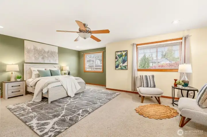 Impressive 2-Story Sunlit Home in High Valley Ranch—Mountain Views, Top Schools & Low HOA! Nestled at the quiet cul-de-sac, this 2005 gem sits on a 7,841 sqft lot with sweeping valley & dramatic mountain views. Zoned for Seattle Hill Elem, Valley View MS & Top-Rated Glacier Peak High School. Soaring ceilings + Oversized windows flood the home with natural light all seasons. Entertain on the expansive deck or in the large, fully fenced yard. Chef’s kitchen features gas range, quartz counters & newer appliances. Luxe primary suite with 5-piece bath. Central A/C, Ring doorbell, all Appliances & Blinds included. Easy access to Mill Creek Town Center, Hwy 9, 522 & I-5. Investor-friendly, pre-inspected & priced to move! Walk-in to Admire this!