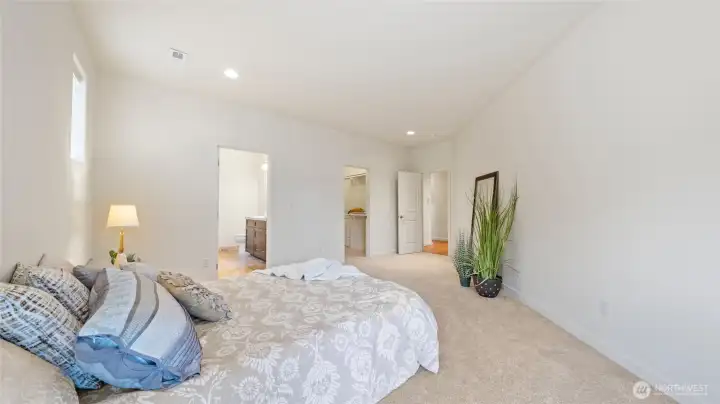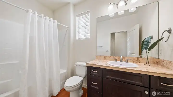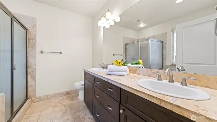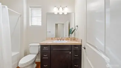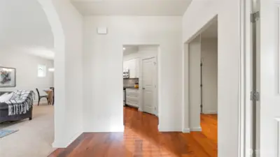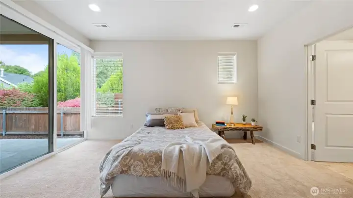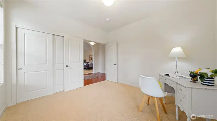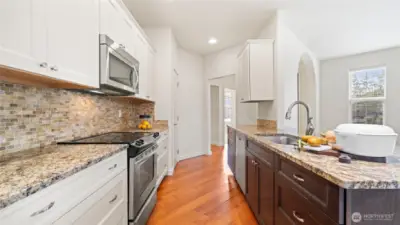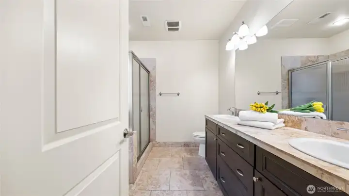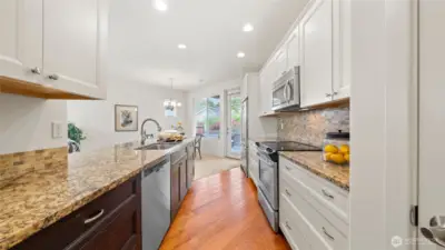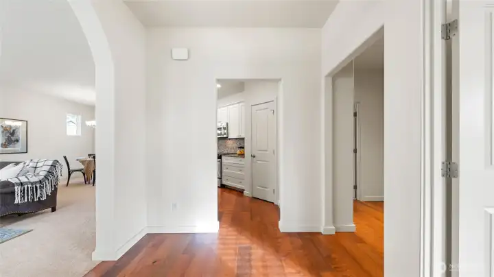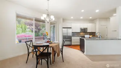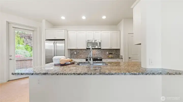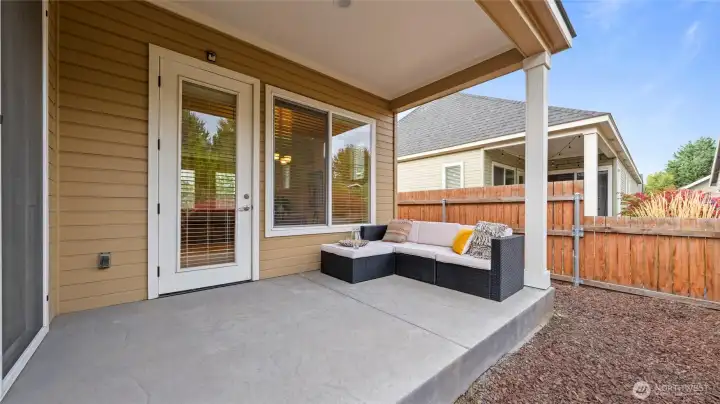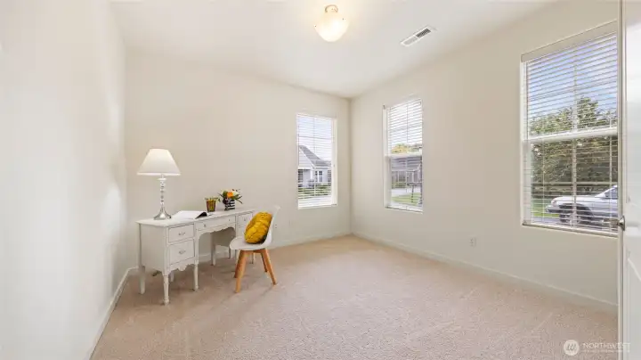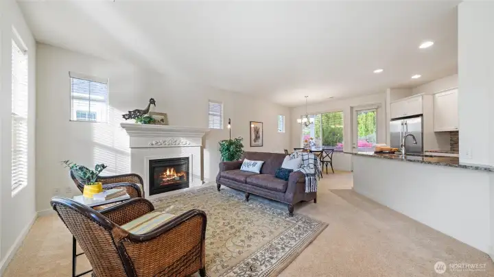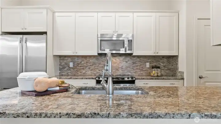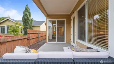 Pristine single-level home in The Villages of Garrison Creek with easy-access level entry from garage. Open floor plan is flooded with natural light in adaptable living and dining areas, plus a 3rd bed/office with French doors. Upscale kitchen features deluxe appliances, pantry, and easy flow to the covered patio. Restful main suite includes walk-in closet with laundry access, double vanity, soaking tub, shower, natural stone finishes and private patio access. Stay organized with pantry, roomy laundry, and hall closet. Enjoy this garden setting with park view from covered patio in fully-fence yard and another park in front. HOA ($226/mo) includes front yard care, snow removal, care of community parks and 3+ miles of walking trails.